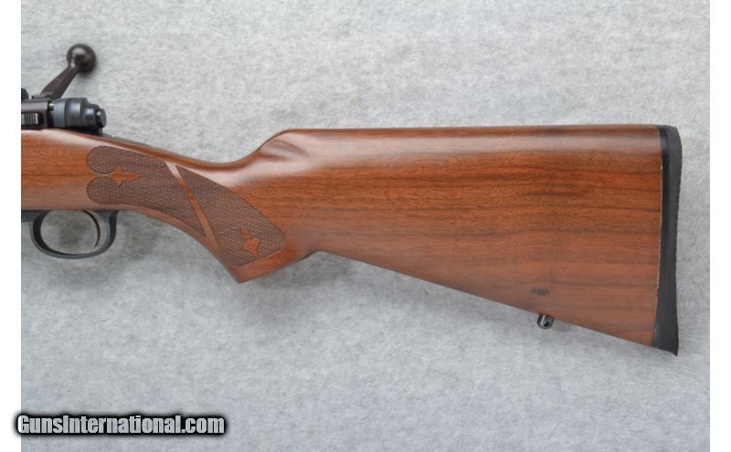 Description: SOLD Caliber Info: .300 WSM Chambers: Hinged floorplate. Metal Condition: Excellent. A couple minor handling marks. Wood Condition: Good. Has some light handling marks. A very fine crack behind the receiver top. Bore Condition: Excellent. Barrels: 24 inch matte black. Stock: Checkered grip walnut pistol grip. Stock Dimensions: LOP 13 5/8 inches. Fore End: Checkered grip walnut. Butt Pad: Pachmayr rubber recoil pad. Weight: 8 lbs. 4 oz. Sights: Scope mount and rings attached. No iron sights. Item Location: Richfield, WI |