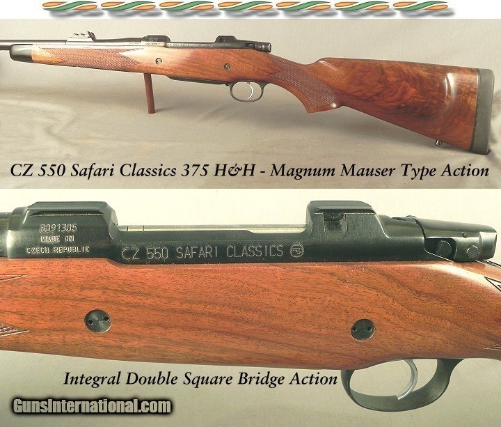 CZ 375 H&H - MODEL CZ 550 SAFARI CLASSICS - DOUBLE SQUARE MAGNUM LENGTH FLAT TOP RECEIVER with DOVETAIL CUTS - CONTROLLED ROUND FEED - 14 1/2" LOP