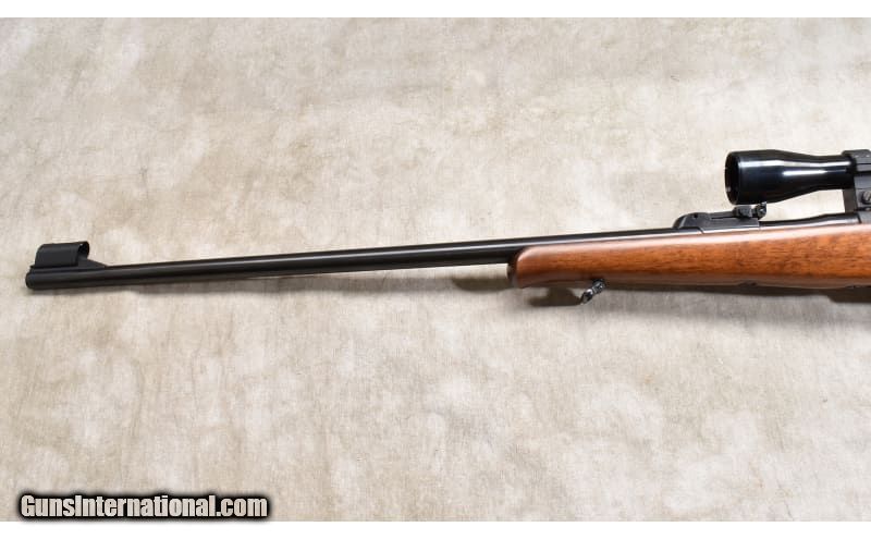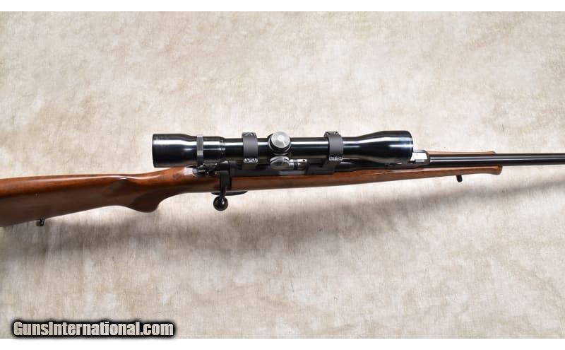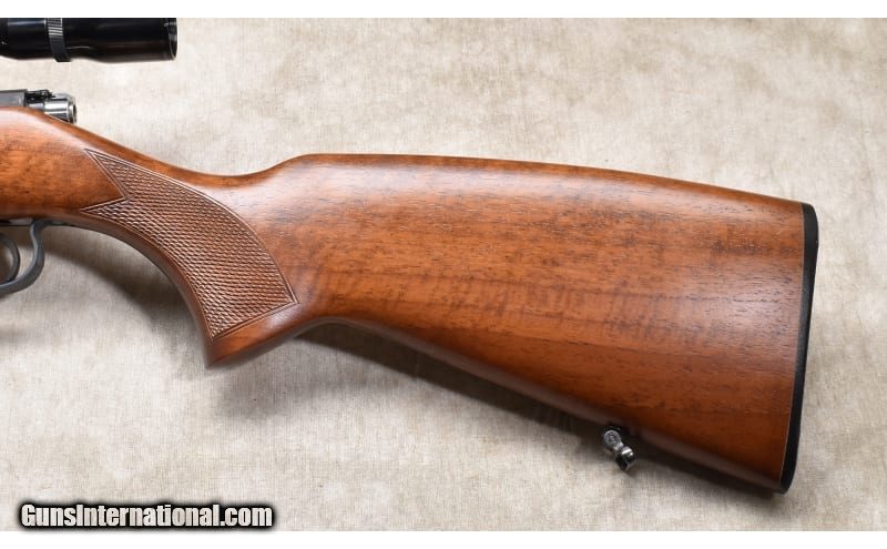Description: An excellent full sized rifle for target, small game hunting, and pest control. The stock is hardwood, in a Bavarian pattern with a curved comb. It is in excellent condition. .22 Long Rifle SOLD Chambers: 5 rounds Metal Condition: Excellent. Wood Condition: Excellent. Bore Condition: Shiny and bright with good rifling. Barrels: 24-5/8 inches Triggers: Factory trigger. Stock Dimensions: LOP: 14 inches Fore End: Slim pattern with Schnabel. Butt Pad: Black plate. Weight: 7 lb - 4 oz incl scope Sights: "Hooded bead and notch open sights, scope-ready and outfitted with a Vintage Weaver V7-B, 2.5-7x scope. Item Location: Rogers |
