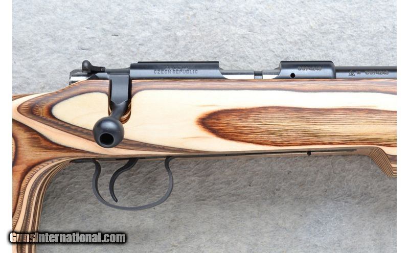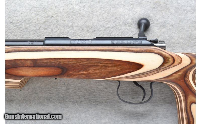 Description: This CZ Model 455 is a right hand bolt action rifle in .22 Long Rifle Cal. It has a 20.5 inch barrel. An integral scope mount base. No iron sights. The stock is a smooth hardwood laminate thumb hole pistol grip butt stock and forearm. .22 Long Rifle SOLD Chambers: Bolt Action 5 round detachable magazine. Metal Condition: Excellent. Wood Condition: Excellent. Bore Condition: Excellent. Barrels: 20.5 inch. Stock Dimensions: LOP 13 3/4 inch. Fore End: Smooth grip hardwood laminate. Butt Pad: Boyds' black rubber pad. Weight: 7 Lb. 3 Oz. Sights: Integral scope mount base. No iron sights. Item Location: Richfield, WI |