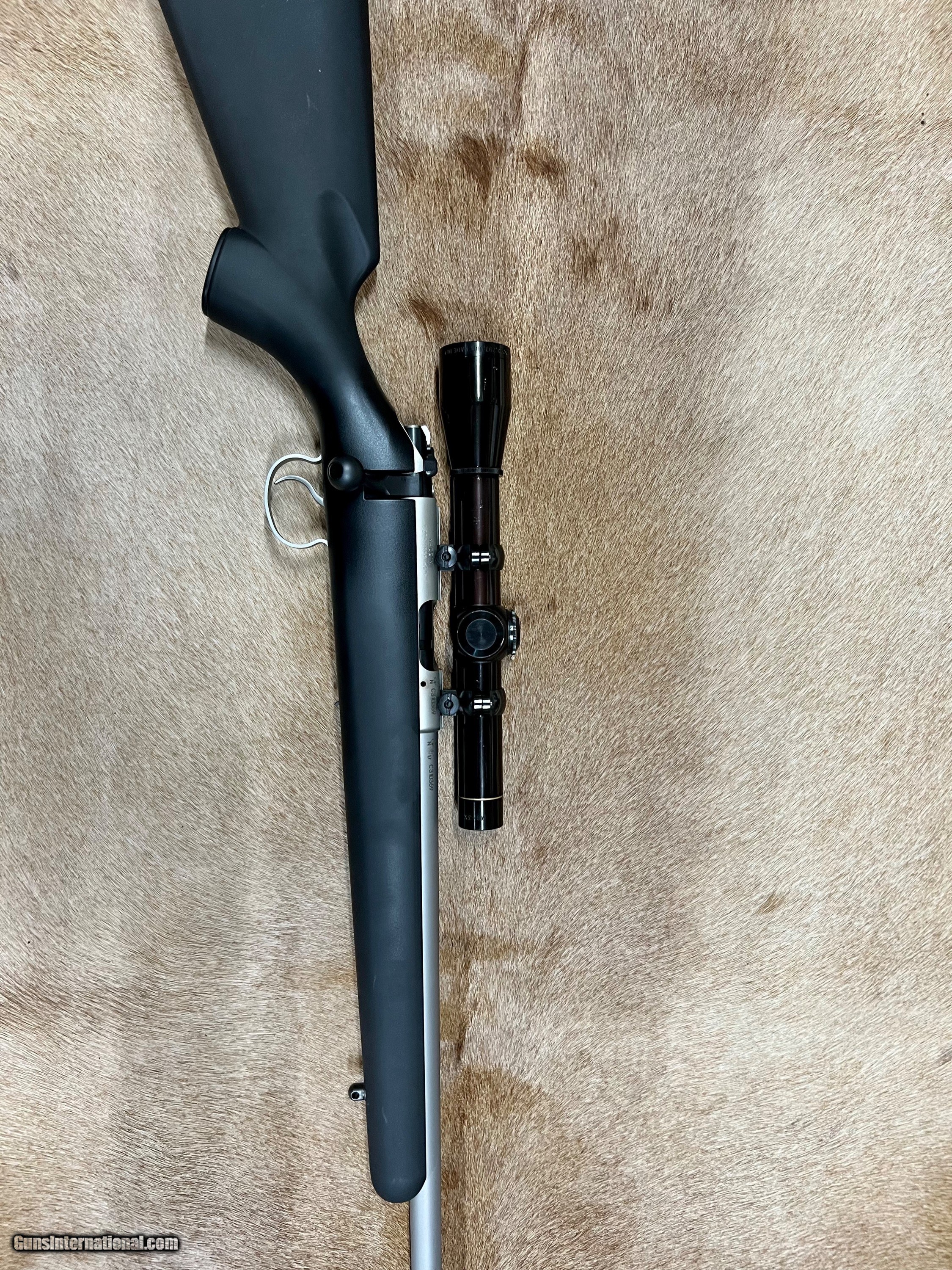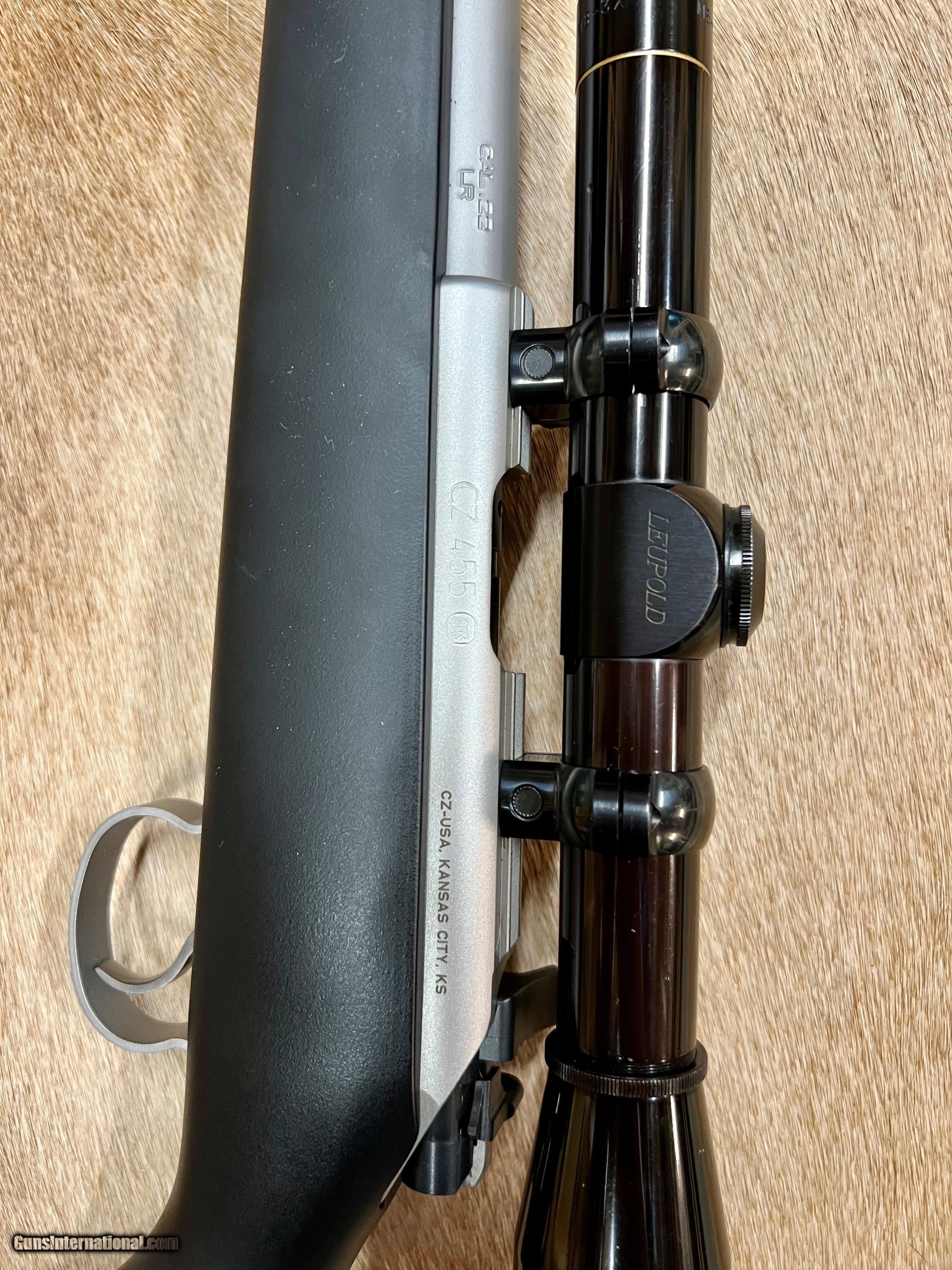 Description: CZ 455 stainless synthetic .22 LR with leupold M8-3X scope. SOLD Rifle Caliber: .22 Long Rifle Manufacturer: CZ Model: 455 Condition: Excellent Metal Condition: Excellent Bore Condition: Excellent Action: Bolt Stock: Black synthetic Finish: Stainless |