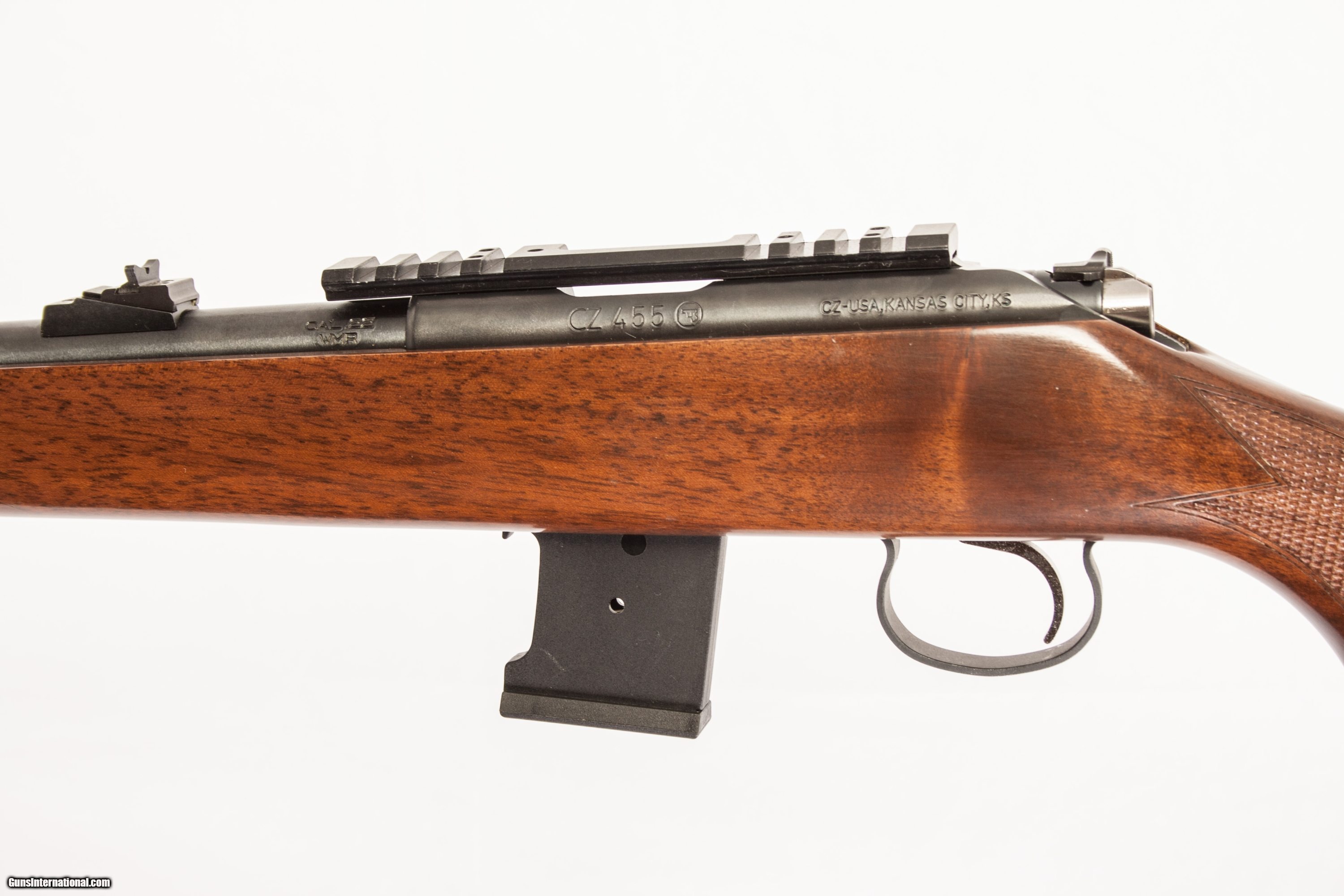 Description: CZ 455 chambered in .22 Mag with a 20 1/2 inch barrel bright bore and good grooves. This gun is in excellent condition and is covered by Dury's Lifetime Warranty.