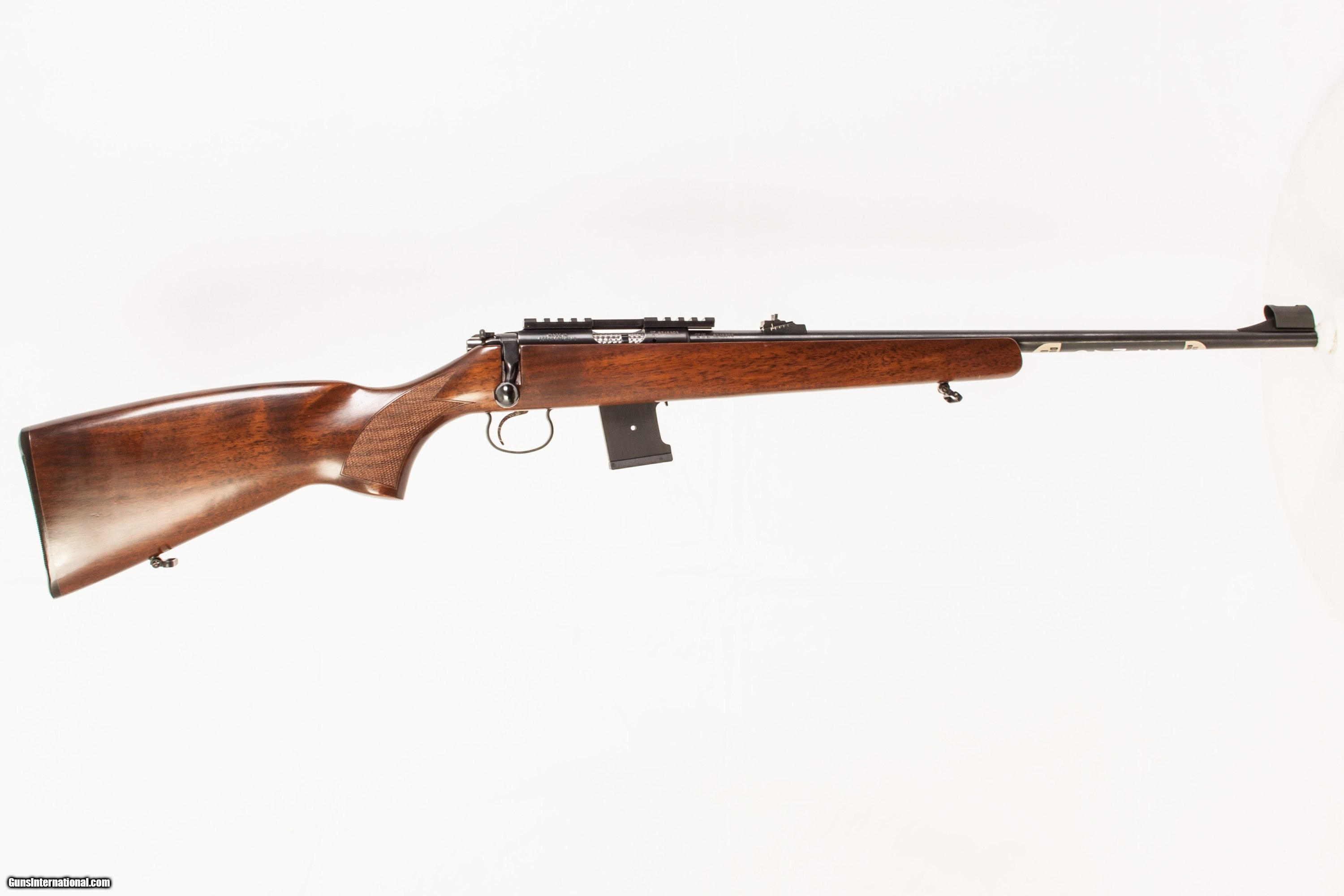 CZ 455 chambered in .22 Mag with a 20 1/2 inch barrel bright bore and good grooves. This gun is in excellent condition and is covered by Dury's Lifetime Warranty.