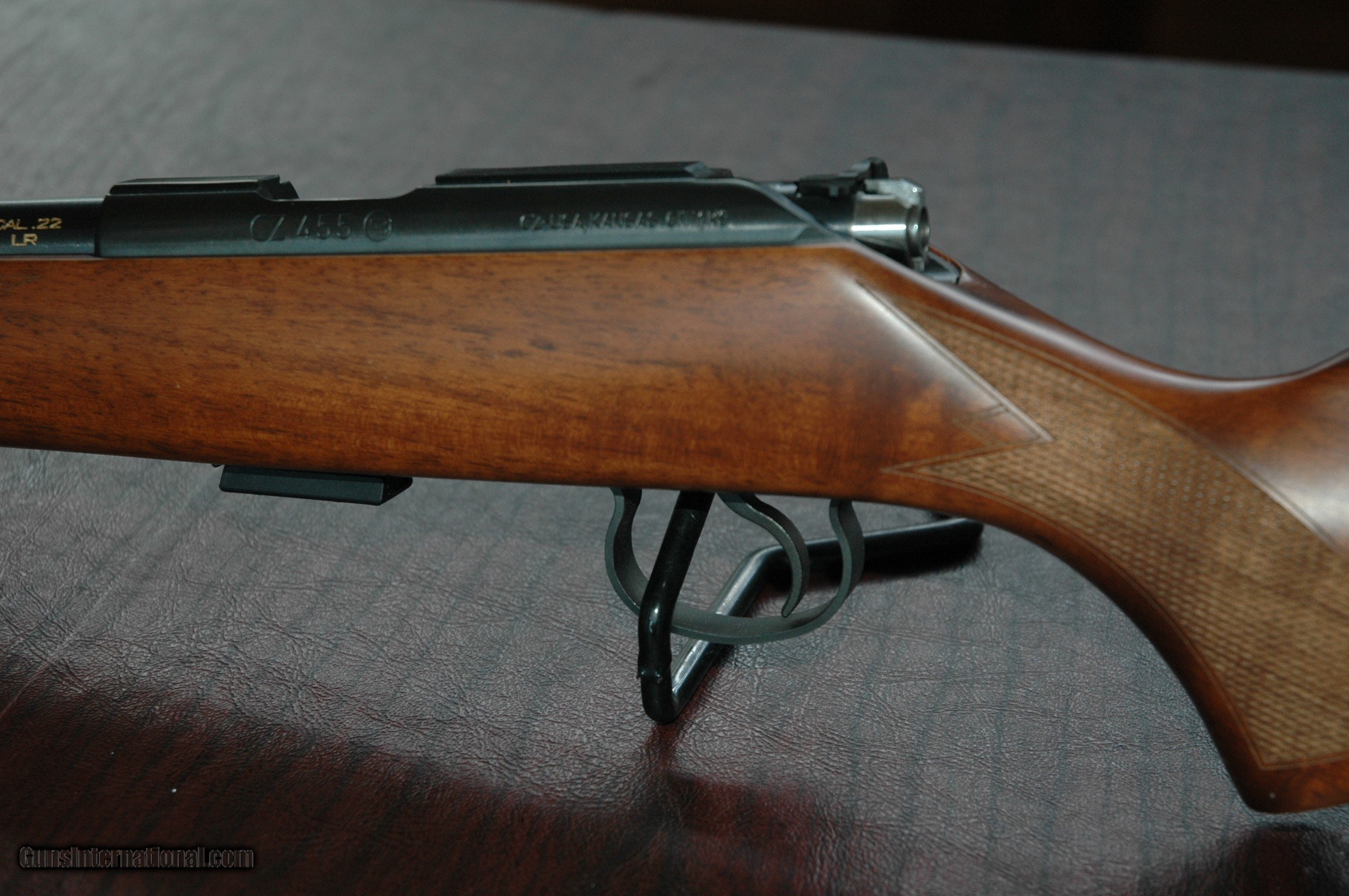 Description: CZ Model 455 in 22 LR. This is the American Model with much better than average wood. This gun has seen very little use. The blueing is 98% and the wood is 95% with just a few very small usage marks. Some one with a little patience could probably steam them out. They are so small they are difficlut to pick up on the high quality photos. Sold only where legal to own and you are expected to know your local gun laws. Shipment only to an FFL and if your FFL doesn't accept firearms from an individual, add $25 to the total. I accept credit cards for an additional fee but you much call me to provide your CC info. Shipping to the lower 47 will be $38 (I will not ship to CA), AK and HI will be more. Let me know if you have any questions and thanks for looking. SOLD Rifle Caliber: .22 Long Rifle Manufacturer: CZ Model: 455 Barrel Length: 20.5 Condition: Excellent Metal Condition: Excellent Wood Condition: Excellent Bore Condition: Excellent |