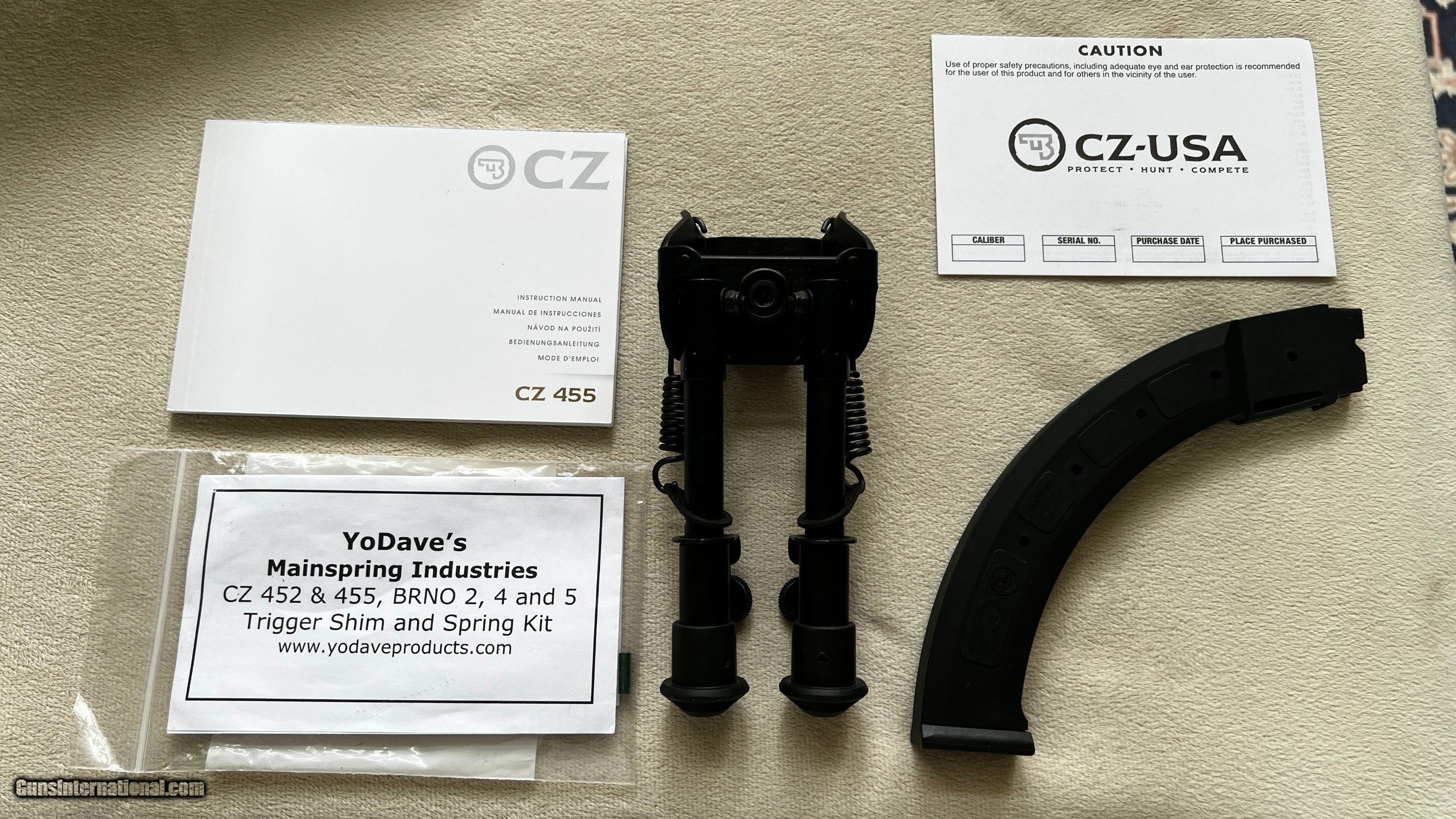 Description: Ready for some ammo and a trip to the range. Absolutely great shooting from the factory. Add the additional $450 of accessories and you have something special. The extras start with the Athlon Argos scope (lifetime warranty with no paperwork), the UTG bipod, a 10 round and extra 25 round magazine and a yet to be installed YoDave trigger kit. Everything is in excellent condition. Please see all the high quality photos to determine condition for yourself. Let me know if you have any questions or need photos of a particular area. Price listed is for cash, but credit cards are available for and additional charge of 3 1/2%. Gun will be shipped to the lower 47 (no shipping to CA) in a hard case for $60. Insurance is not included but highly recommended. Shipped only to an FFL and if your FFL does not accept a shipment from an individual with a bill of sale and copy of drivers license, add $25 to the order to cover my cost of using my FFL. Sold only where legal to purchase and you are responsible for knowing your local laws. SOLD Rifle Caliber: .22 Long Rifle Manufacturer: CZ Model: 455 Barrel Length: 20 Bore: Excellent Condition: Excellent Metal Condition: Excellent Bore Condition: Execellent Barrels: Blued Barrel Type: Varmint Action: Bolt Stock: Synthetic |