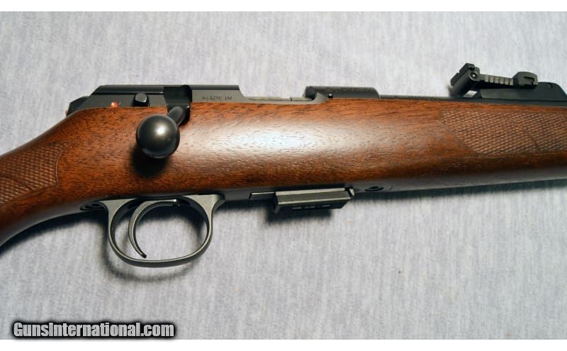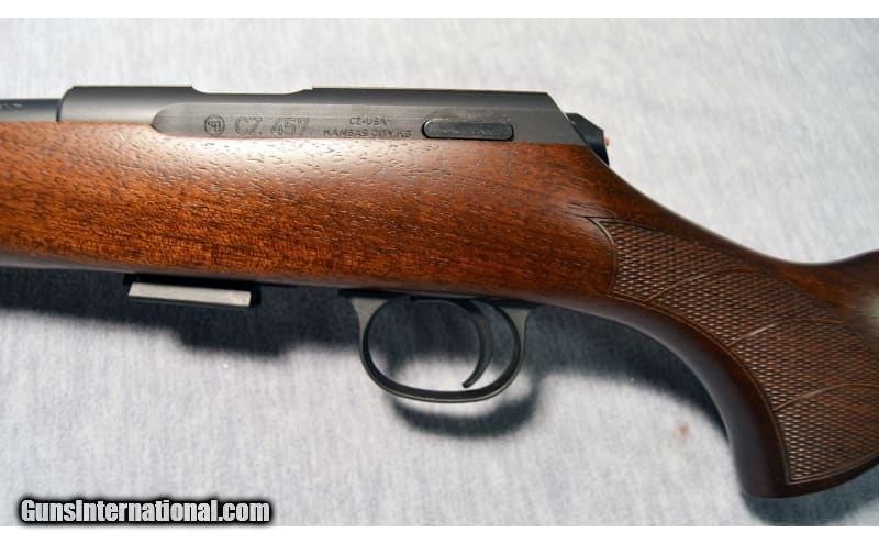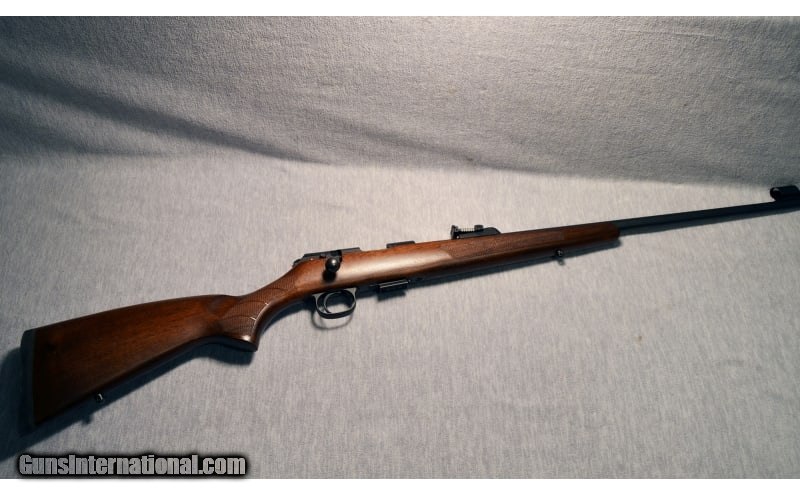 Description: The CZ 457 features a Turkish Walnut stock in the American style. The push-to-fire safety is new as well as the 60 degree bolt rotation. This is a fine rimfire rifle in excellent condition. .22 Long Rifle SOLD Metal Condition: Excellent Wood Condition: Excellent Bore Condition: Very good. Barrels: "24"" rifled, floating Triggers: Adjustable factory trigger. Stock Dimensions: Stock length 30.75 Butt Pad: Factory rubber. Weight: 6.45 lbs Sights: "Front hooded blade, rear adjustable. Dovetail for attaching scope mounts. Item Location: Cheektowaga, NY |