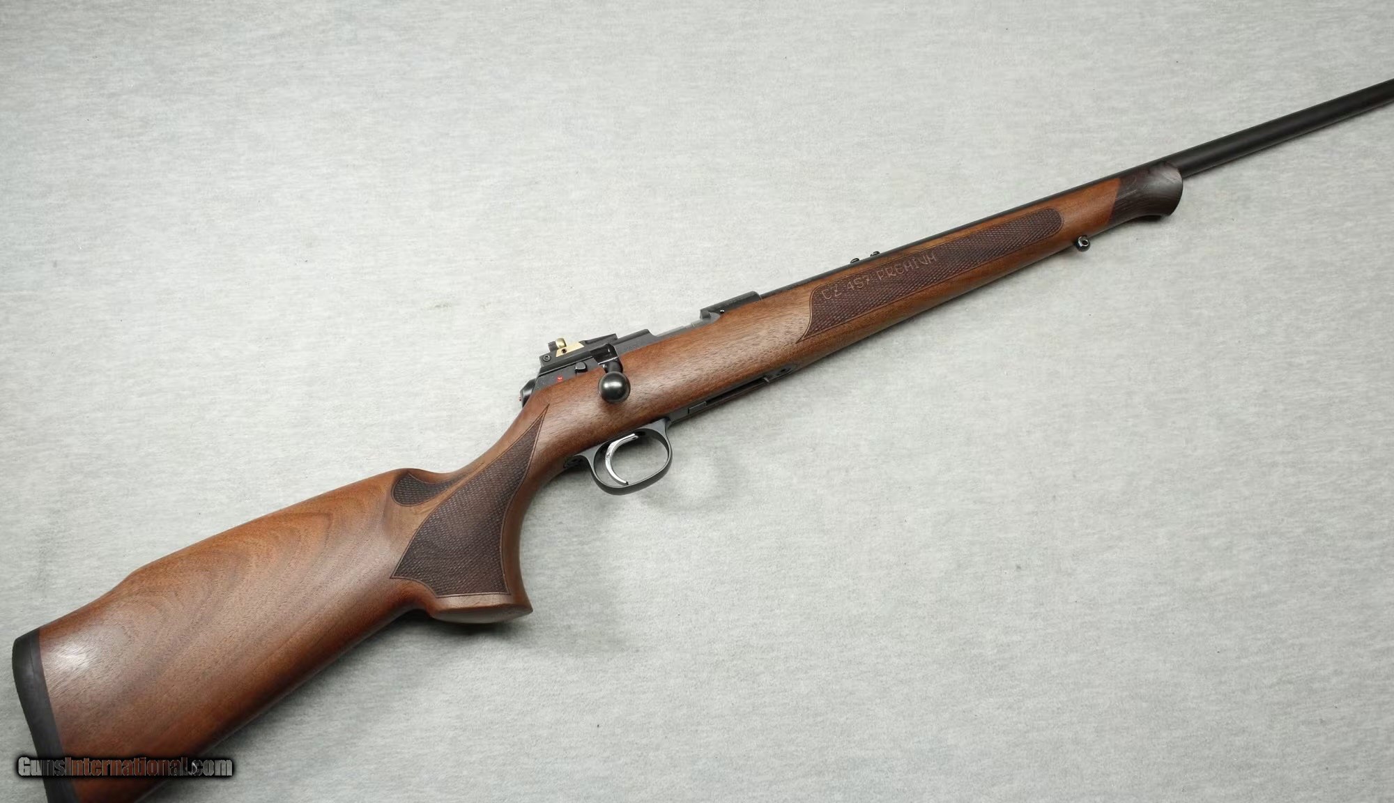Description: CZ 457 Premium chambered in .22 Long Rifle. It features a Turkish Walnut stock has a decorative forend tip with Schnabel, while its hog-back stock has a mild Monte Carlo and a cheekpiece. It's 24.8-inch barrel wears a Skinner Express Peep rear sight and a fiber optic front sight, while the muzzle is threaded 1/2×20. It has an American-style push-to-fire safety and a bolt rotation of 60°, allowing for larger ocular bell diameters with lower ring heights. It also has a trigger adjustable for weight, creep and over-travel. It comes with 1 mag. .22 Long Rifle SOLD Metal Condition: Excellent Wood Condition: Excellent Bore Condition: Bright Barrels: 24.8 Inches Triggers: Adjustable Stock Dimensions: LOP 14 Inches Fore End: Checkered walnut Butt Pad: Rubber pad Weight: 6 lbs 10 oz Sights: Skinner Express Peep rear sight and a fiber optic front sight Item Location: La Vista, NE |