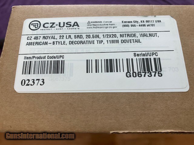 CZ 457 ROYAL, 22 LR. 20” THREADED BARREL, WALNUT STOCK, NEW IN THE BOX