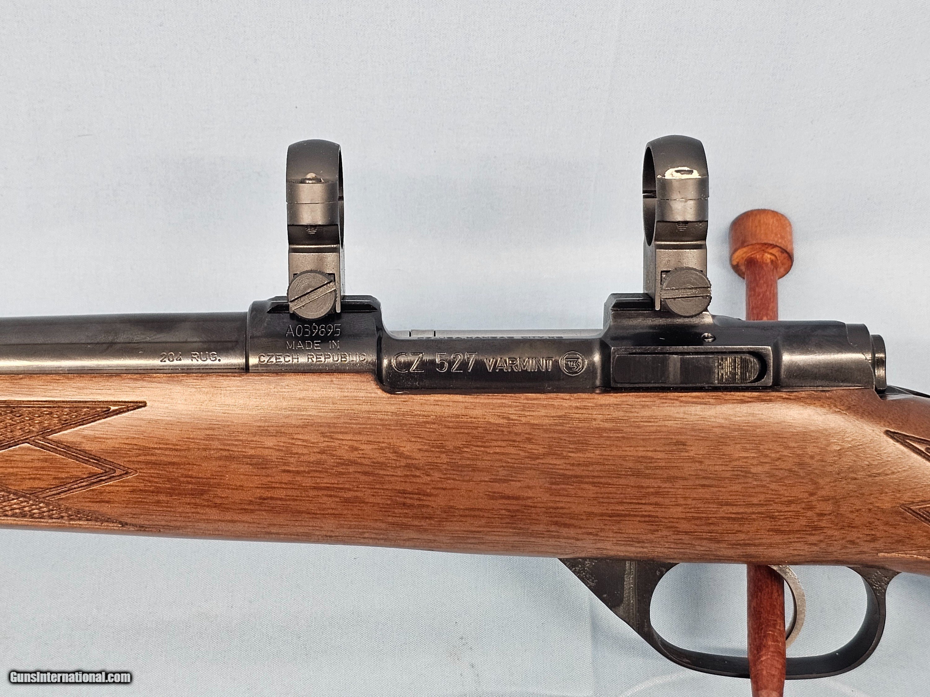 Description: MADE IN THE CZECH REPUBLIC. 26'' BARREL WITH NO SIGHTS. INCLUDES SCOPE RINGS AND 1 MAGAZINE. VERY CLEAN AND READY TO HUNT. PLEASE ADD $75 FOR SHIPPING. SOLD Rifle Caliber: .204 Ruger Manufacturer: CZ Model: 527 Condition: EXCELLENT Metal Condition: EXCELLENT Wood Condition: EXCELLENT Bore Condition: EXCELLENT Action: BOLT LOP: 13 3/4'' Weight: 7 LB 14 OZ |