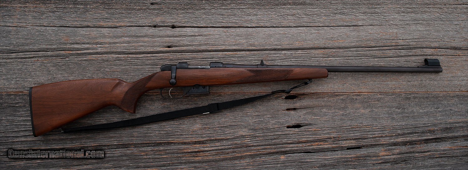 Description: CZ - 527 - .22 Hornet caliber - Item Number: CZ58327 Rifle type: Bolt Action Action: Bolt Action Barrel length: 23 1/2 Sights: Factory Sights Weight: 6 lbs, 4 oz Overall condition: Good Stock condition: Good Metal condition: Good Stock: Original finish Metal: Original finish Type of Case: none Finish: Blue Type of Butt: Factory Pad thickness: 0.25 " Manufactured in: Czech Lop: 13 3/4 " Hand: Right Comments : Some light pitting on the barrel. R-79 SOLD |