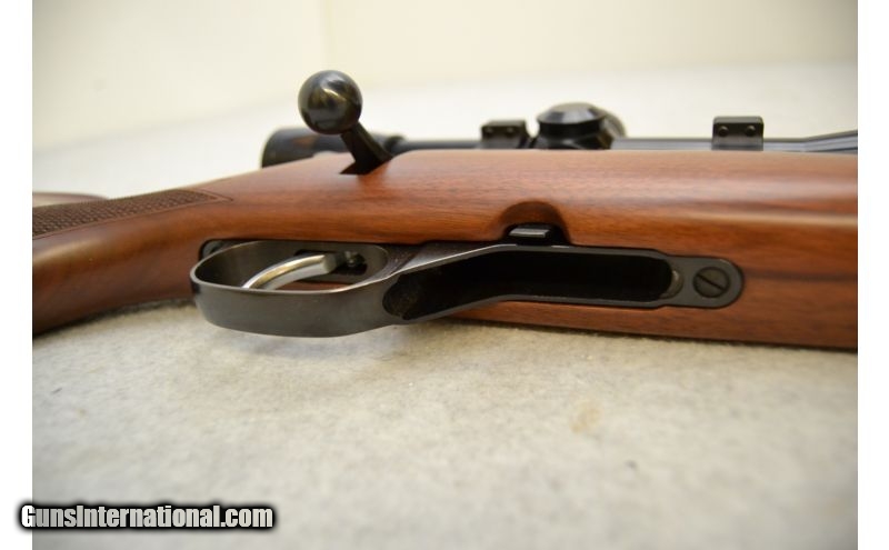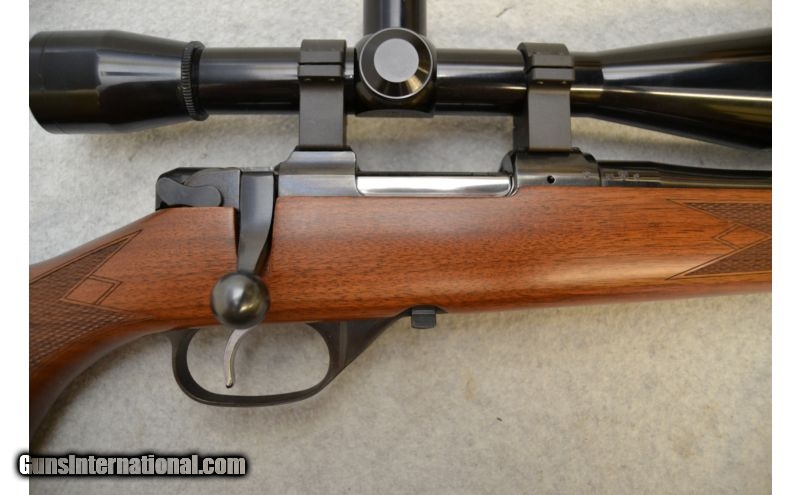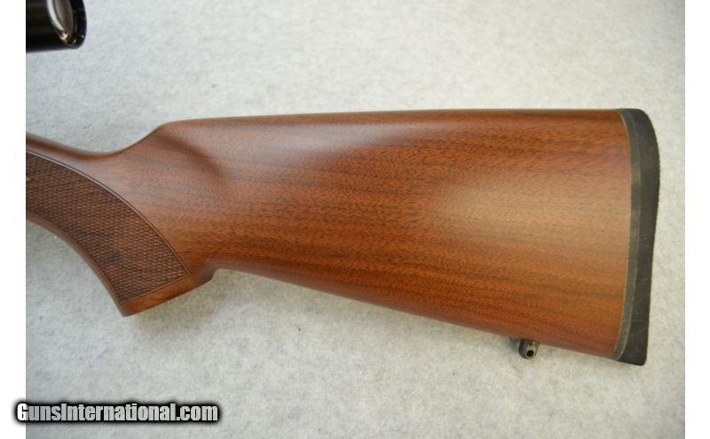 Description: SOLD Caliber Info: .223 Remington Metal Condition: Very good. Has a scratch to the finish on the barrel (see pictures) Wood Condition: Very good to excellent; has a few minor handling marks Bore Condition: Looks basically brand new Barrels: 22 Triggers: Satin stainless with smooth surface Stock: Checkered Turkish walnut Stock Dimensions: 13 1/5" LOP Fore End: Side panel diamond checkering Butt Pad: Black rubber Weight: 7lbs as pictured Sights: Leupold 12x scope Extras: Includes the factory box, one (1) five (5) round magazine, sling, sun shield for the scope, and pop off lens covers for the scope. Item Location: Green Bay, WI |