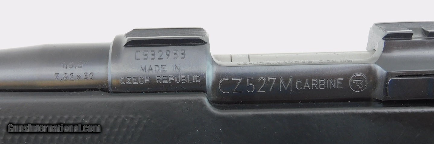 Description: CZ 527 Carbine 7.62X39 WBox, 18 1/2" bbl, bright shiny bore, good rifling, three dot sights - front is red fiber, integrated 16 MM scope bases, black checkered synthetic grip stock, extremely light use marks, sling studs, black recoil pad, and one 5 round magazine. Add 3% for Credit Card Shipping $40.00 in the 48 contiguous United States From the manufacturer: "The Carbine is an intermediate range ‘brush gun.’ Weighing in at less than 6 lbs, this handy rifle has a straight comb walnut stock and open sights. For a long time this was our only model chambered in 7.62×39 (now joined by the 527 Youth Carbine), it combines low recoil with effectiveness on medium-sized game such as deer and wild boar, making it ideal for younger shooters. Both chamberings offered in the Carbine are economical to shoot given their service rifle heritage and the availability of surplus ammunition. Built to CIP specifications, our 7.62×39 chambers are ideal for shooting steel-cased surplus ammo. Designed to shoot .311 bullets. SOLD |