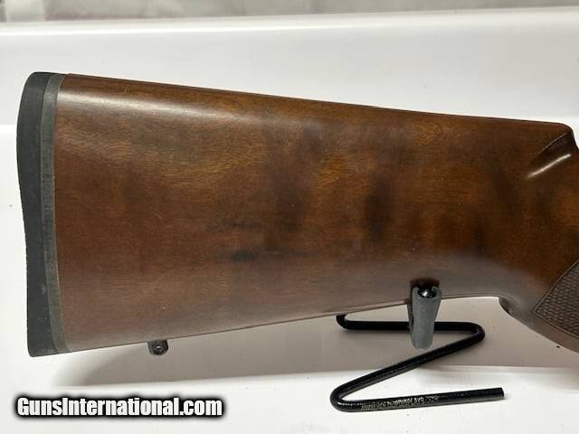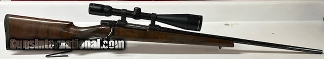 This bolt-action rifle is built on a Mauser-style action and features a classic American-style stock, a blued finish, and a 23.6-inch barrel. It is designed for use with optics and typically does not come with iron sights, instead featuring a built-in 19mm dovetail for mounting a scope.