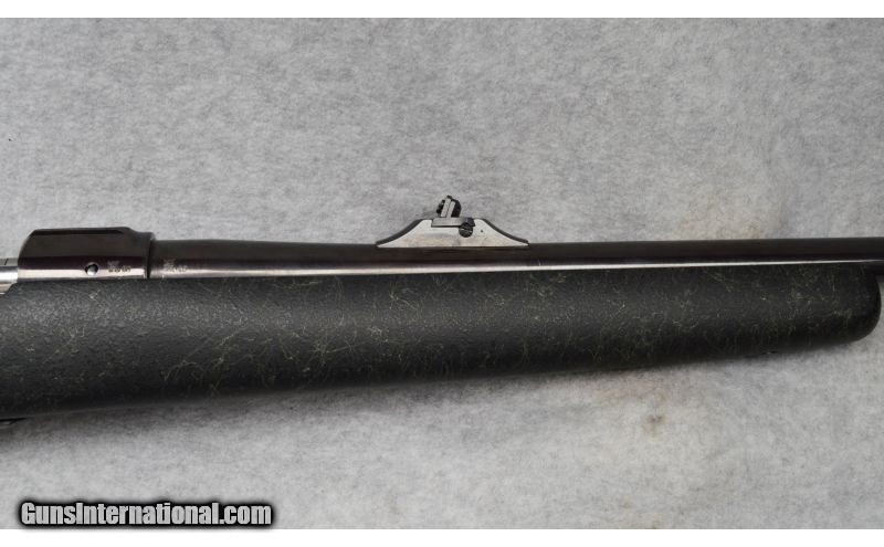 Description: SOLD Caliber Info: 9.3 x 62 Metal Condition: Excellent. Wood Condition: Very good with scratches. Bore Condition: Bright shing with crisp rifling. Barrels: 24 Stock: Textured synthetic. Fore End: Textured synthetic. Butt Pad: Polymer recoil pad. Weight: 7-lbs., 9-ozs. Sights: Hooded front bead, adjustable rear blade. Item Location: Fort Worth, TX |
