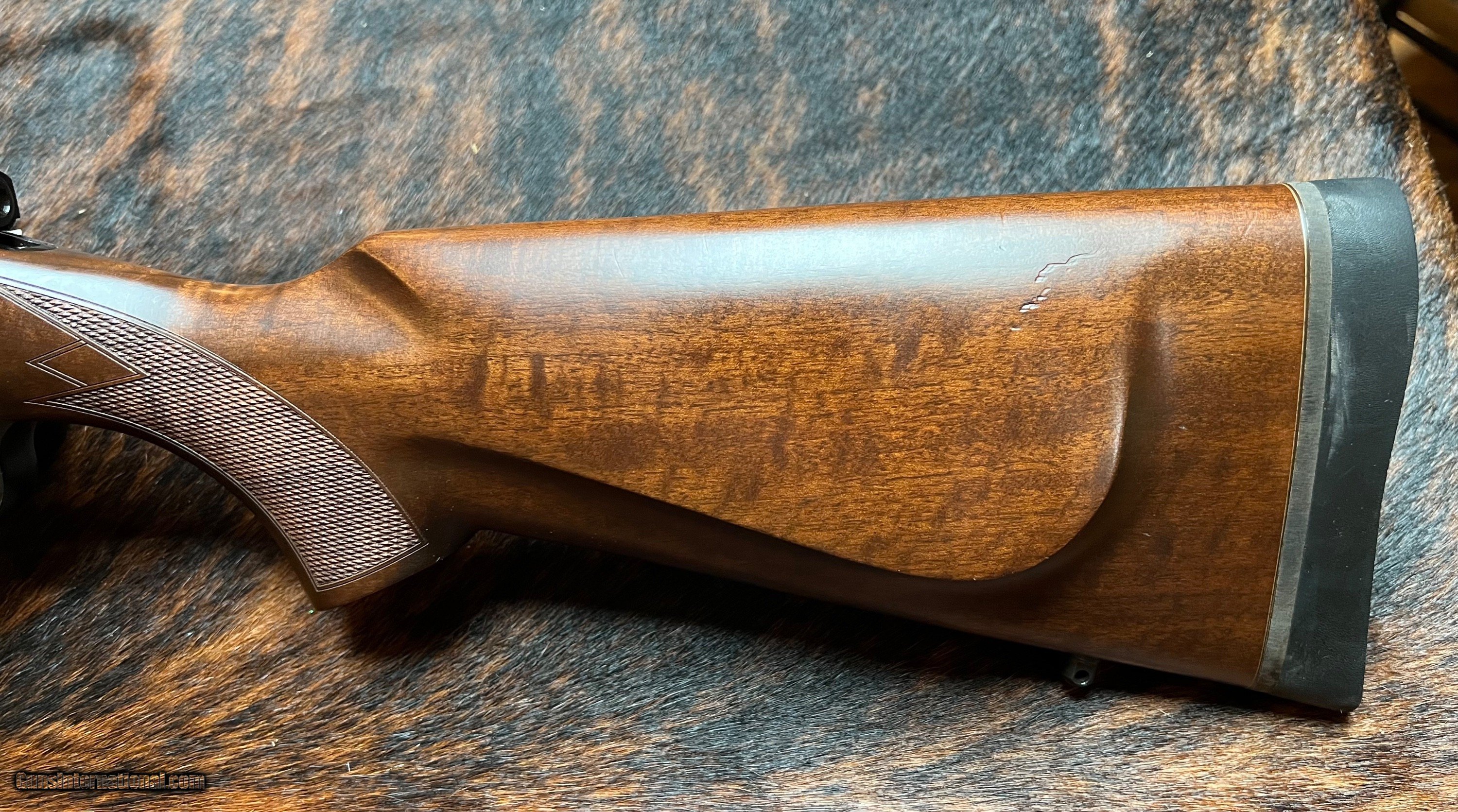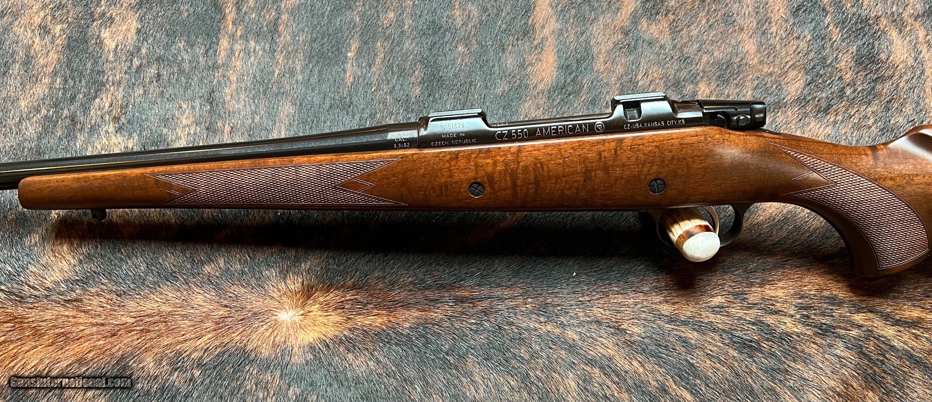 Description: This CZ 550 American bolt action rifle is chambered in 9.3x62. This CZ has a barrel length of approximately 23.5 inches. This rifle appears to be in good mechanical condition and everything appears to work as it should. The bore is bright with strong rifling and is in great condition as well. This CZ does not appear to have been fired all that much. SOLD Rifle Caliber: 9.3x62mm Manufacturer: CZ Model: 550 American Serial Number: B151379 Barrel Length: 23.5 Condition: Excellent Metal Condition: Excellent Wood Condition: Excellent Bore Condition: Excellent Triggers: Single Set |