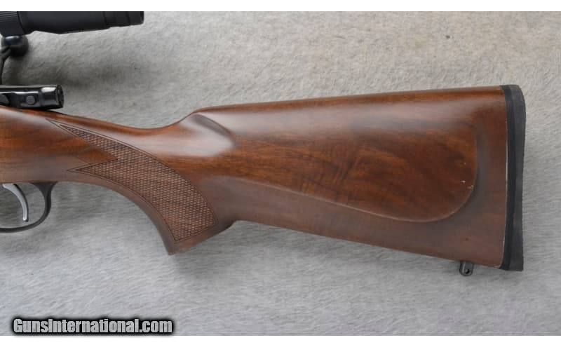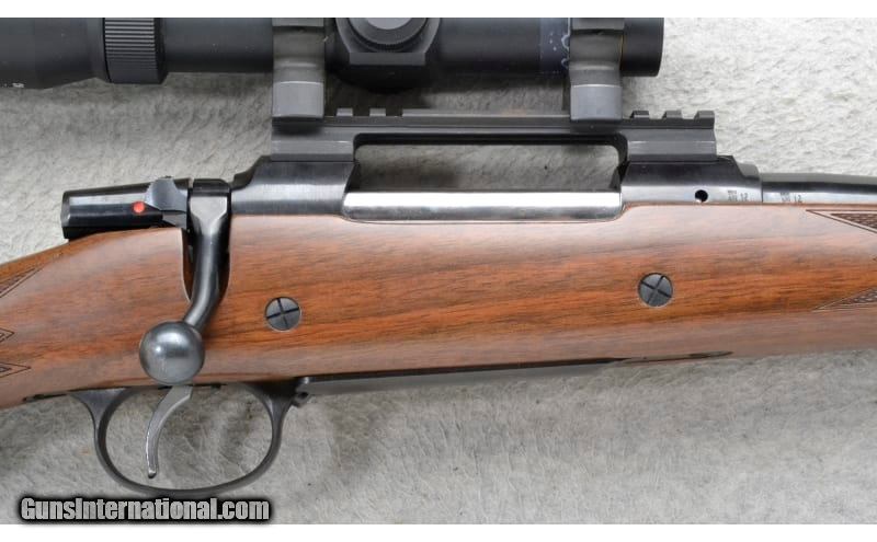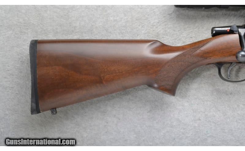 Description: This CZ Model 550 American is a right hand bolt action rifle in 9.3x62mm Cal. It has a 24 inch barrel. It is outfitted with a Leupold Scope. No iron sights. The butt stock is a checkered grip walnut pistol grip with a raised cheekpiece. The forearm is a checkered grip walnut. The trigger is adjustable. 9.3x62mm SOLD Chambers: Internal chamber with a hinged floorplate. Metal Condition: Good. Barrel has some light freckling. Wood Condition: Very Good. Some light handling marks. Bore Condition: Excellent. Barrels: 24 inch. Triggers: Adjustable. Stock Dimensions: LOP 13 inch. Fore End: Checkered grip walnut. Butt Pad: Decelerator black rubber pad. Weight: 9 Lb. 4 Oz. Sights: Leupold VX.R 1.25-4x20 Scope. Item Location: Richfield, WI |