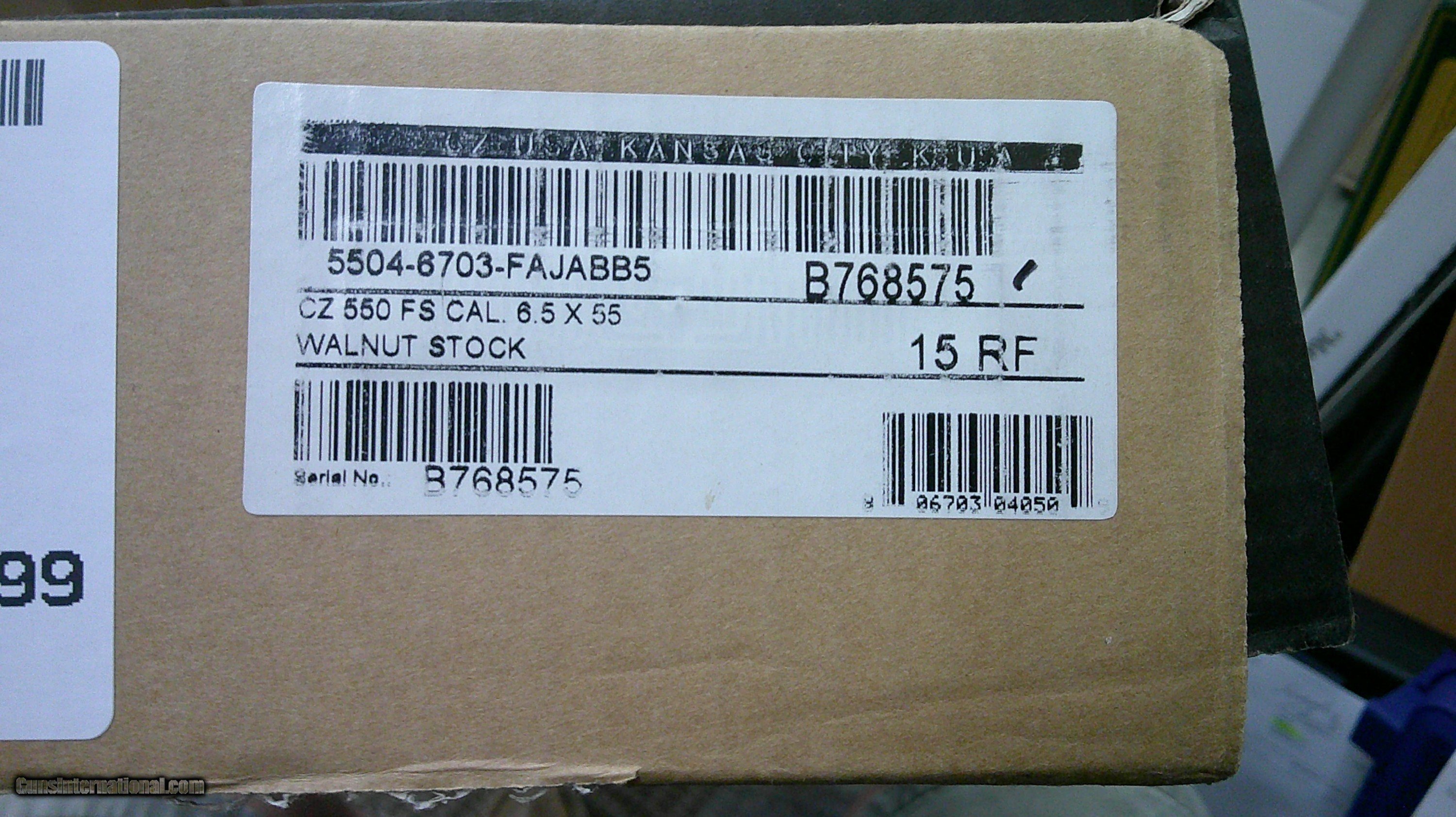 Description: CONSIGNMENT USED VERY GOOD CONDITION CZ 550SF Bolt Action Rifle 04050, 6.5x55 Swedish, 20.5", Walnut Mannlicher Stock, Blued Finish, 1 -5 RND MAG SINGLE SET TRIGGER -- GROOVED RECEIVER -- FRONT AND REAR SIGHTS THERE IS A MARK ON BOTTOM OF STOCK NEAR PISTOL GRIP HAS FACTORY BOX & MANUAL ***PRICE NON NEGOTIABLE ****PLEASE CALL IN THE WITH THE SELLER’S INVENTORY NUMBER IF INQUIRING ABOUT A FIREARM****** WE DO NOT SHIP FIREARMS AND/OR FIREARMS’ PARTS OUT OF THE 50 UNITED STATES, SO DON’T ASK—YOU NEED TO KNOW IF FIREARM IS LEGAL FOR YOUR STATE PRICE REFLECTS PAYMENT BY MONEY ORDER / CASHIERS CHECK. A 3% PREMIUM IS ADDED FOR CREDIT CARDS. WE DO ACCEPT PERSONAL OR BUSINESS CHECKS, BUT THERE IS A GRACE PERIOD OF 10 BUSINESSS DAYS ON THEM. Shipping is $60 for handgun and $50 for long gun. Shipping to Alaska and Hawaii will be more based on weight of firearm. USPS SHIPPING IS HIGHER. WE DO OFFER LAYAWAY PLANS FOR 30,60, OR 90 DAYS.NOT ON CONSIGNMENT GUNS THERE IS A $5.00 CHARGE FOR EVERY 30 DAYS ITEM IS ON LAYAWAY. WE ALSO REQUIRE A 20% DOWN PAYMENT ON TOTAL OF LAYAWAY SALE. LAYAWAYS ARE NON- REFUNDABLE. HERE IS HOW THIS PROCESS WORKS. YOU WOULD CALL US AT 540-337-9218 WITH LISTER # TO PURCHASE THE GUN. THEN ONCE I HAVE RECEIVED PAYMENT AND AN FFL (FEDERAL FIREARMS LICENSE) FROM A LICENSED DEALER IN YOUR AREA OF YOUR CHOICE. WE WILL THEN SHIP THE GUN TO THEM. YOU WOULD THEN PICK UP THE GUN AT YOUR LOCAL DEALER AND DO PAPER WORK THERE. Please have your FFL Dealers contact information when you call. DOMINION OUTDOORS 15 ANGELA COURT FISHERSVILLE, VA 22939 540-337-9218 540-337-2422 fax M – F 9 a.m. to 6 p.m. ETZ Sat 9 a.m. to 4 p.m. ETZ ****PLEASE CALL IN THE WITH THE SELLER’S INVENTORY NUMBER**** ***PLANO HARD CASES AVAIABLE FOR PURCHASE $25.00 WITH THE PURCHASE OF A FIREARM** *** Online prices compared to in store prices will vary. *** SOLD |
