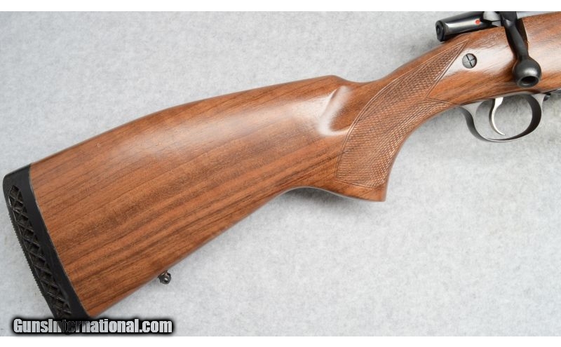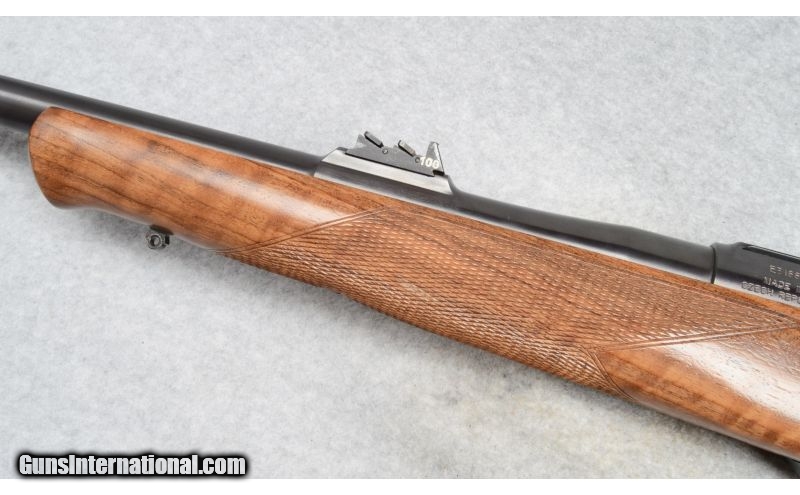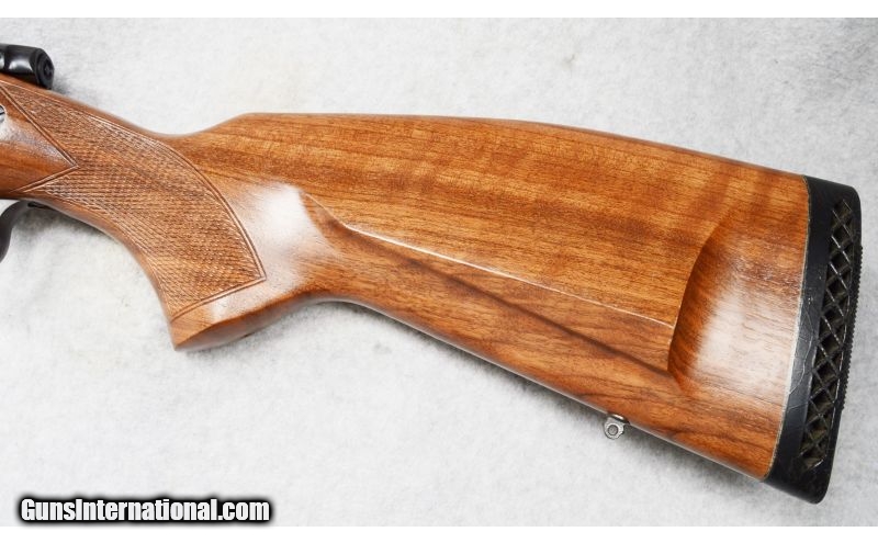 Description: SOLD Caliber Info: .375 H&H Magnum Metal Condition: Excellent. Wood Condition: Very good with minor blemishes. Bore Condition: Shiny with strong rifling. Barrels: 25 Stock: Checkered walnut. Fore End: Checkered walnut. Butt Pad: Rubber recoil pad. Weight: 8-lbs., 13-ozs. Sights: Front bead, 3-position rear blade. Item Location: Fort Worth, TX |