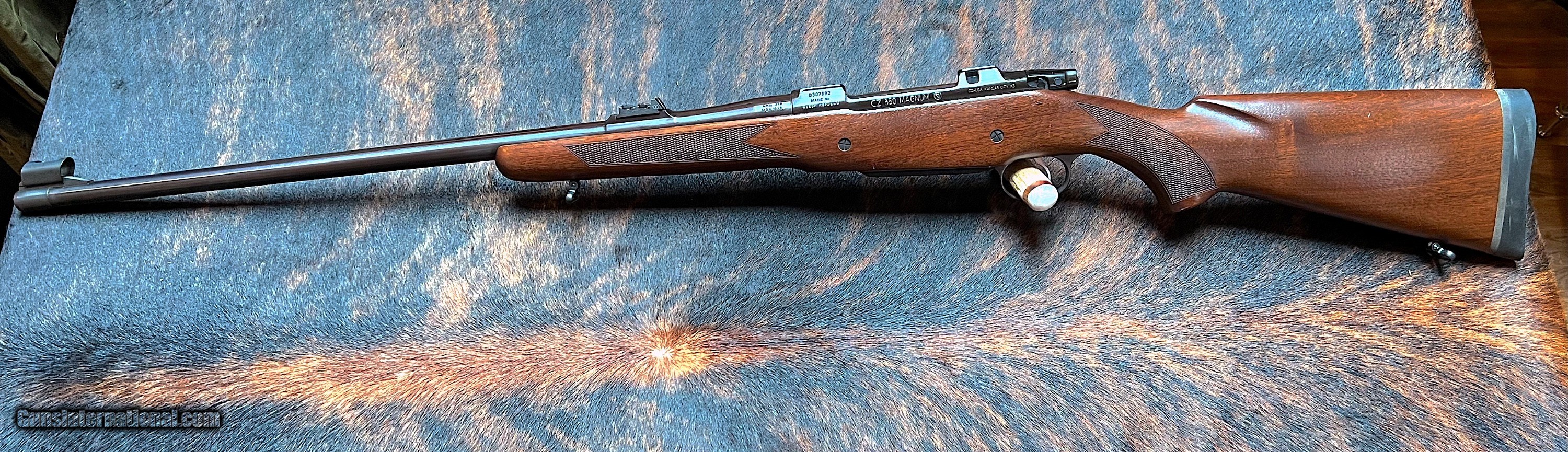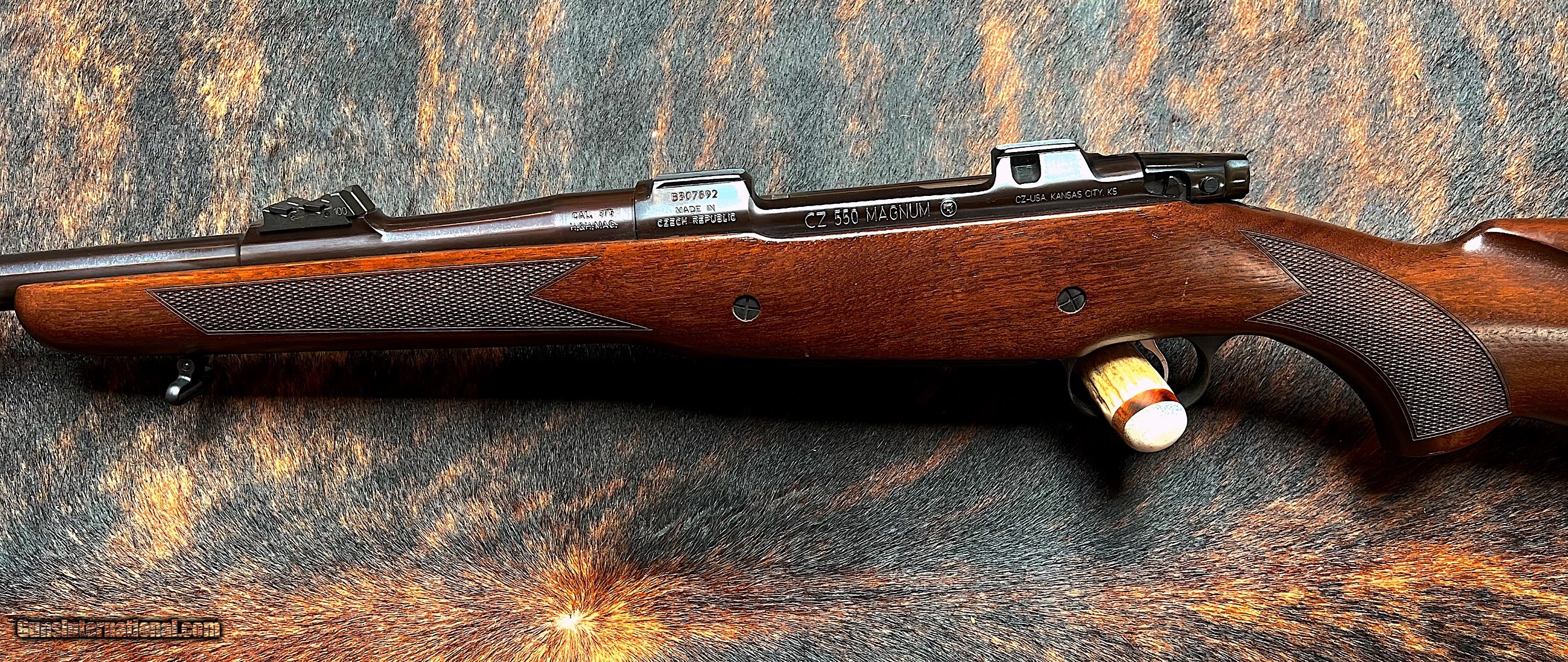 Description: This dark wood CZ 550 Mag comes with the 3 leaf folding sights and single set trigger. Known for their durable actions and affordable price the 550 Mag is one of the most used rifles by African PH's. Being out of production for some years now rifles like this are an easy buy. SOLD Rifle Caliber: .375 H&H Magnum Manufacturer: CZ Model: 550 Magnum Serial Number: B30-7892 Barrel Length: 21 Condition: Excellent Metal Condition: 95% Wood Condition: 90% Bore Condition: Outstanding Barrels: 24in Triggers: Single Set Butt Pad: Recoil pad |