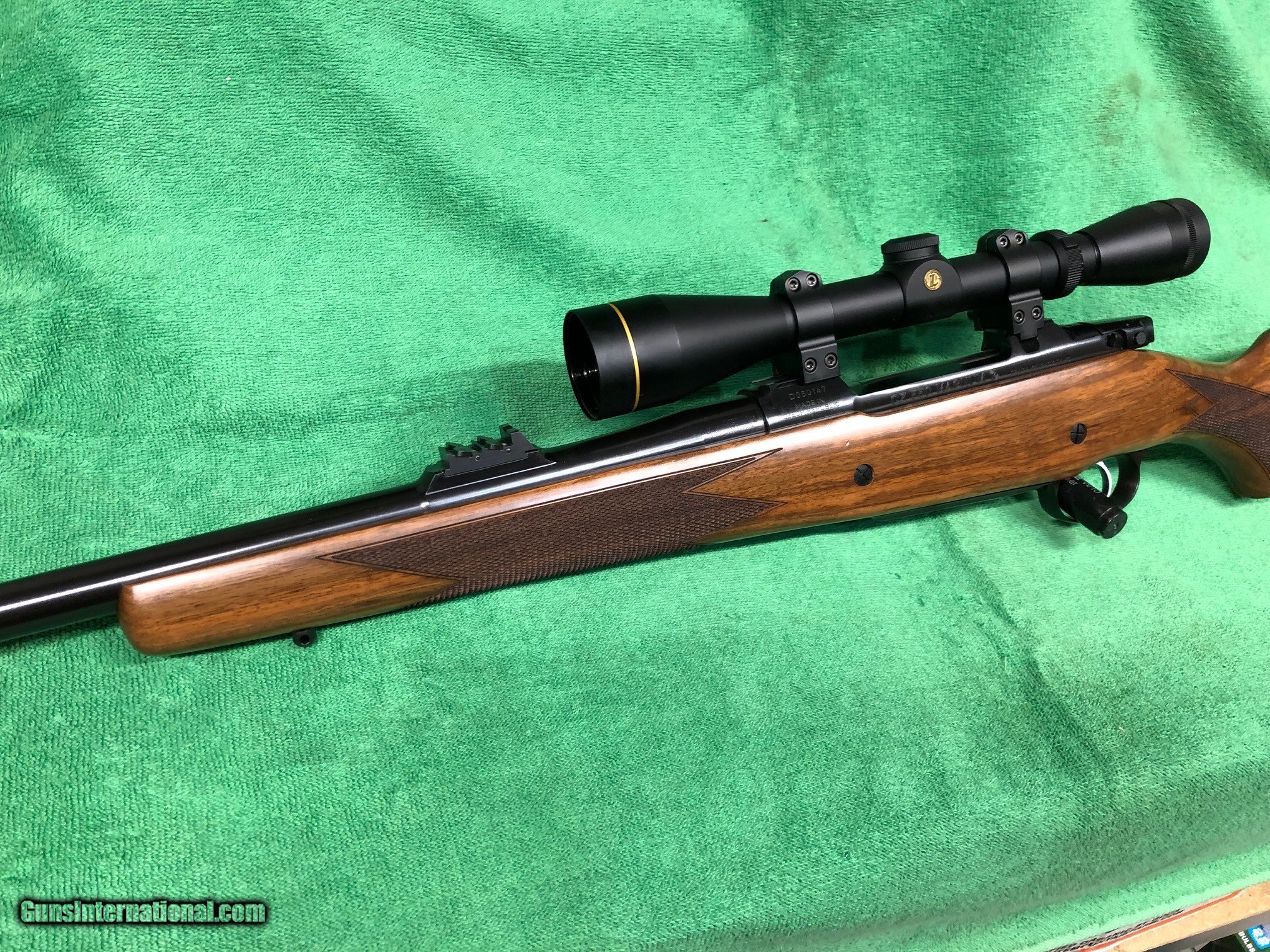 Description: SOLD PENDING FUNDS TO WILLIAM.Here is a LIKE NEW CZ 550 Magnum bolt action rifle chambered in the powerful 375 H&H Magnum! The rifle has a beautiful straight grain stock with no knots and checkering is as new. LOP is 14 inches to the end of a CZ factory recoil pad. 25 inch barrel. Rifle with scope weighs approx. 10 lbs on my bathroom scale. The listing price is for the rifle alone. Magazine holds 5 rounds. Recently installed NECG white front bead sight. The original sight and site hood come with the rifle. Action is very smooth and she cycles all 5 rounds very smoothly. It has the CZ single set trigger. Deep, rich bluing on all metal. Rifle condition is truly as new. The optional new Leupold VXII 3-9x40 scope with the wide duplex reticle mounted in a set of QD Warne rings. It is available for an additional $425.00 Just one or two minor dings in the stock. Must ship to a valid FFL from my FFL. Shipping is $100 for CONUS. No sales outside of the US. Email me with questions. Very nice dangerous game rifle! SOLD Rifle Caliber: .375 H&H Magnum |
