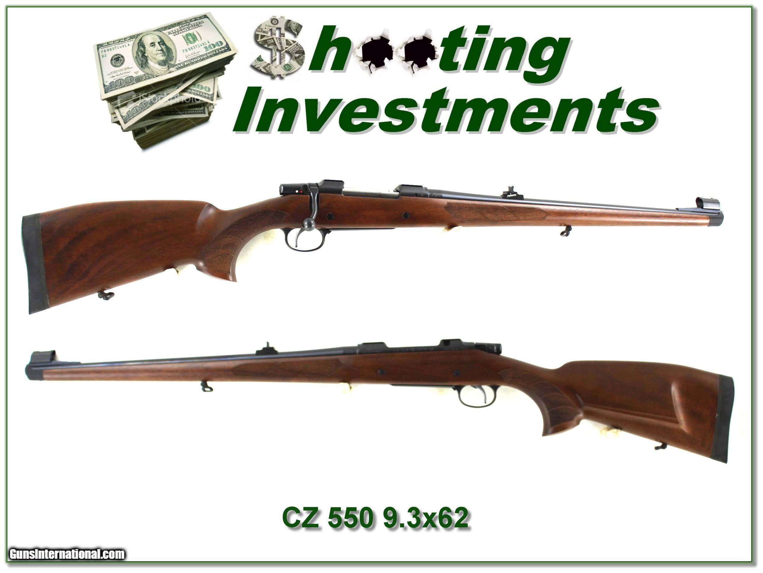 Description: Collectors, this is a new condition and I believe unfired CZ 550 Medium in 9.3x62. It has a 20in barrel and full length stock. I find no marks on the metal or the wood! You won’t find a nicer one. I am selling this one on consignment and as such lay-a-way can’t be used. It does of course have the standard 3-day inspection. Shipping and insurance is $59. Please email me with any questions or larger pictures. (Consign your quality firearms with Shooting Investments for only 12%! Let me know if you have any you would like to sell!) 23-0439 Payment: Payment is by Money Order, Cashier’s Check or Personal Check. I can now also accept Credit Cards (MasterCard, Visa, Discover & American Express) with a 3% convenience fee. Shipping: The shipping charge will be listed in each description. It is $49 for most firearms. Some heavy guns or those insured for over $2000 will be higher. Shipments to Alaska and Hawaii are higher because air shipment is required. Most firearms are shipped on Tuesday and Thursday and usually in 5 days of receipt of payment. We package all shipments carefully and insure them. Optics are shipped Priority Mail and most other non-firearm shipments are shipped First Class. Returns: Our return policy is simple. If for any reason you are not pleased with your purchase, you may return your item for a full refund of purchase price. Ammunition cannot be returned. It is important to us that you are happy. Guns cannot be fired or dissembled before returning them and they must be returned in the same condition as received. Notification of a return must occur within 3 days of receipt at your dealer. Shipping, convenience and dealer fees are not refundable and are the responsibility of the buyer. Lay-a-way: If needed, we offer a 60 day lay-a-way option on most firearms. It is 1/3 now, 1/3 in 30 days and 1/3 in 60 days. Lay-a-way firearm sales are final and cannot be returned. If a lay-a-way is not completed the first payment cannot be refunded. Consigning your firearms with Shooting Investments: We will help you get top dollar for your firearms. While most local guns shops charge 20% or more, our fee is only 12% with a minimum of $75. At your local gun shop it might take months to sell. Selling on-line provides instant access to thousands of interested buyers. You won’t find any other on-line dealer willing to sell your firearms for only 12% or listing every gun on 3 separate s. Selling through an House typically costs the seller 15% and the buyer an addition 15% (so 30%) and you have to wait several months to sell and longer to receive funds. If properly priced, we will sell your firearms within a few weeks. Send us an email or give us a call and we’ll explain how easy it is for you to get top dollar. Trading: Trading for us is really just buying your gun to re-sell. If you have a gun you want to trade, please email a picture and we will let you know what we can give for it. You will always get more if we sell it for you on consignment. SOLD |