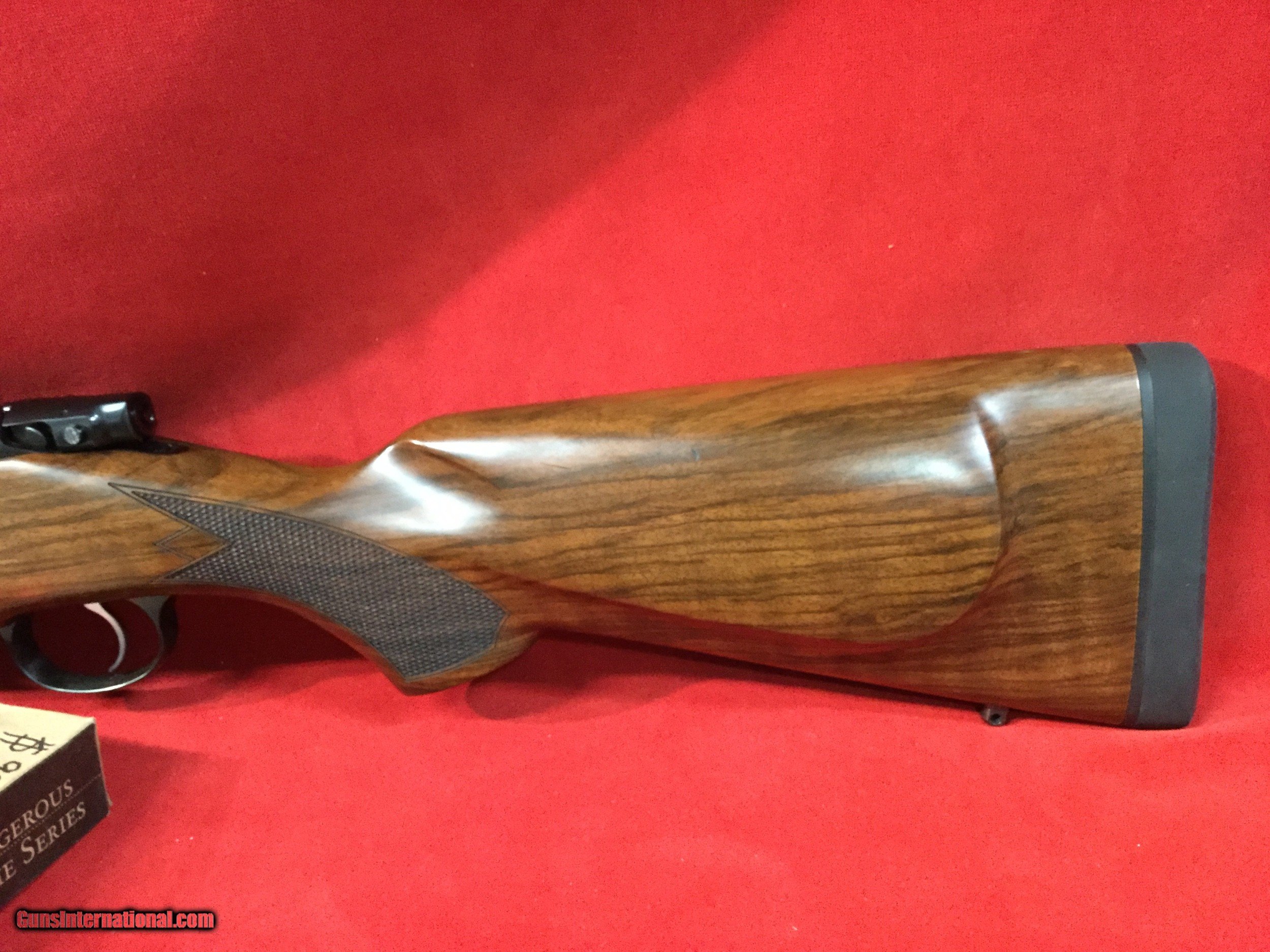 Description: For any one looking for a Big Game Safari rifle we have an excellent piece on consignment. Rifle is used with very minor handling marks. CZ 550 Safari Classic chambered in 416 Rigby. With the controlled-round feed of the Mauser system, there's no chance to short shuck the action when under stress. It features a square bridge receiver, cold-hammer-forged, lapped 25" blued barrel, beautiful Turkish walnut stock, two-position safety, and a single set trigger. Great for anyone looking to hunt big game and not bust the bank. Includes one 20rd box of Hornady 416 Rigby 400gr DGS. $1599.99 plus $45.00 shipped and insured to your FFL dealer. Add 4% for credit card payments. SOLD |