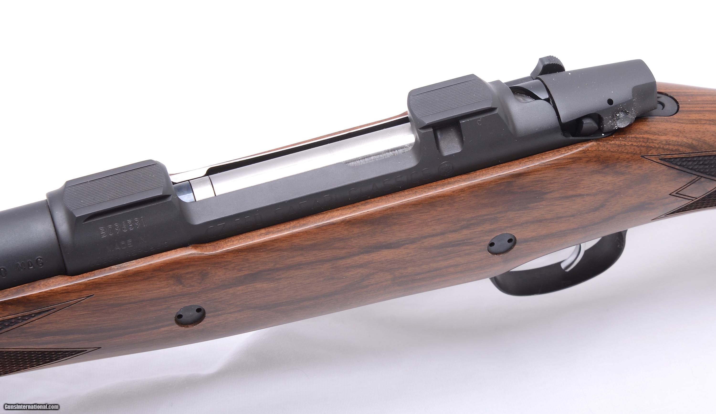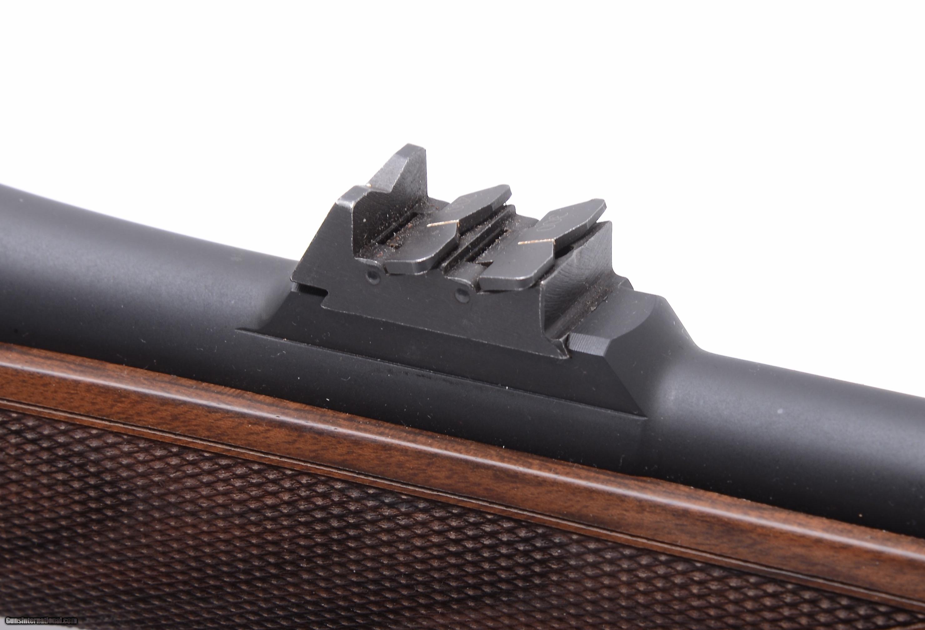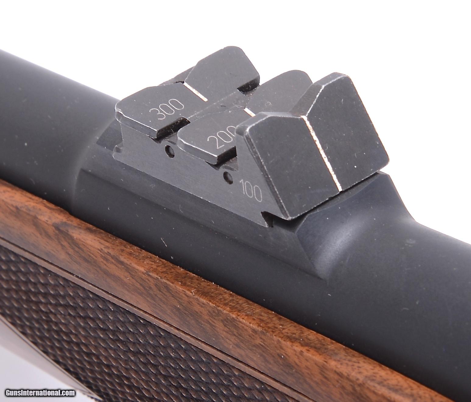 Description: CZ550 Safari Classics PH Magnum chambered for the .550 Magnum. This rifle was a custom make-up for the 2016 Safari Club International Show and does a great job of “showing off” the flexibility and creativity of the crew at CZ USA. Starting with the fantastic, highly regarded, double square bridge CZ 550 Mauser action and add a number of custom features: Machined sight boss with one standing and two folding express sights, custom matte blue finish, installed recoil reducer in the matte finished high grade walnut stock with cheek piece, barrel band sling swivel on the 23” barrel, cross bolts and “steel” bed, relieved action and extended mag box. This rifle is 44” overall length, 14 ¼” LOP over a 1” Pachmayr decelerator presentation pad. The trigger breaks sharply at just over 3 lbs. and just under 2 lbs. using the single set trigger. Overall weight is 9 lbs. 8 oz. with recoil reducer installed. New in box. Retail $4299.00 Special $3570.59 SN: B096391 SOLD |