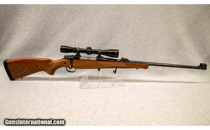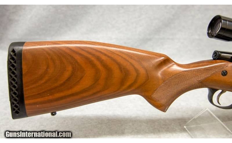 Description: CZ 550 Safari Magnum, chambered in .375 H&H. Features include: 25 in. heavy sporter barrel, 4 shot fixed mag., express sights, single set trigger, checkered walnut stock with curved cheekpiece, 9.4 lbs. Comes equipped with a Leupold 3-9X40 Scope. Bore is shiny. Stock is in great condition despite some scuff marks near the buttpad and on the left side near the receiver. .375 H&H Magnum SOLD Chambers: .375 H&H Metal Condition: Very Good Wood Condition: Very Good Bore Condition: Very Good Barrels: 25' Stock Dimensions: 14' Butt Pad: Rubber Sights: "Adjustable Rear Express, Leupold 3-9X40 Item Location: Fort Mill, SC |