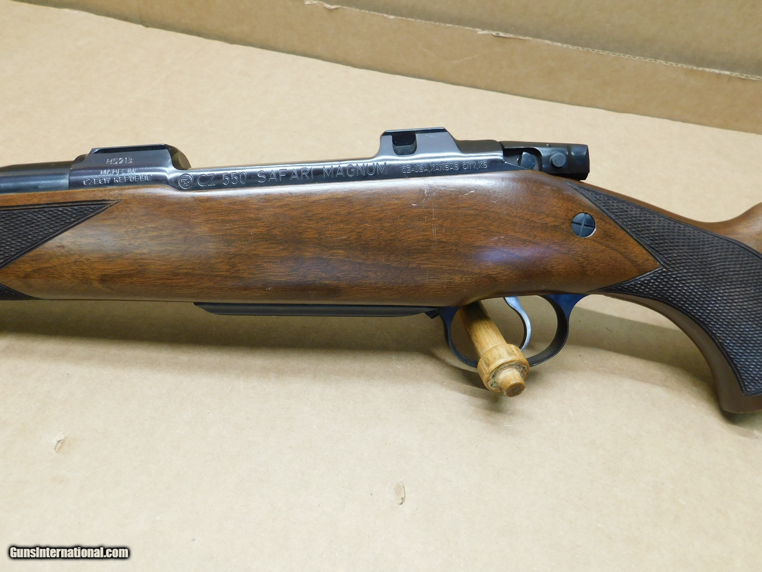 Description: This is a used CZ 550 Safari Magnum 416 Rigby bolt action rifle It is a 3+1 shot with a 25" blued barrel SN-H5913 SOLD Rifle Caliber: .416 Rigby Manufacturer: cz Model: 550 Safari Magnum Serial Number: H5913 Barrel Length: 25 Condition: Very good Metal Condition: very good Wood Condition: Very good Bore Condition: Very good Barrels: Blue Barrel Type: Round Action: Bolt Stock: Checkered Walnut with sling studs Finish: Blue |