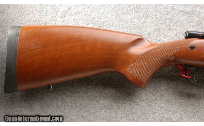 Description: This big CZ Safari Magnum is in great condition. The blue is like new with no visable issues. The wood stock is also in excellent conditon and free from dings and dents. If you are in the market for a heavy rifle this is it. This fine rifle looks to be unfired since it left the factory. SOLD Caliber Info: .458 Win Mag. Chambers: Bolt action repeater. Metal Condition: Excellent. Wood Condition: Excellent. Bore Condition: Like new. Barrels: 25 Inch round blue with sights. Triggers: Single set. Stock: Nice mid grade walnut with a cheek piece and sling studs. Stock Dimensions: 13 7/8 Inch LOP. Fore End: Matching walnut with a schnable. Butt Pad: Soft black rubber butt pad. Weight: 9 Lbs 6 Oz. Sights: 1 standing and 2 folding rear 100,200 and 300 yards and a White bead blade front. Item Location: Owatonna, MN |