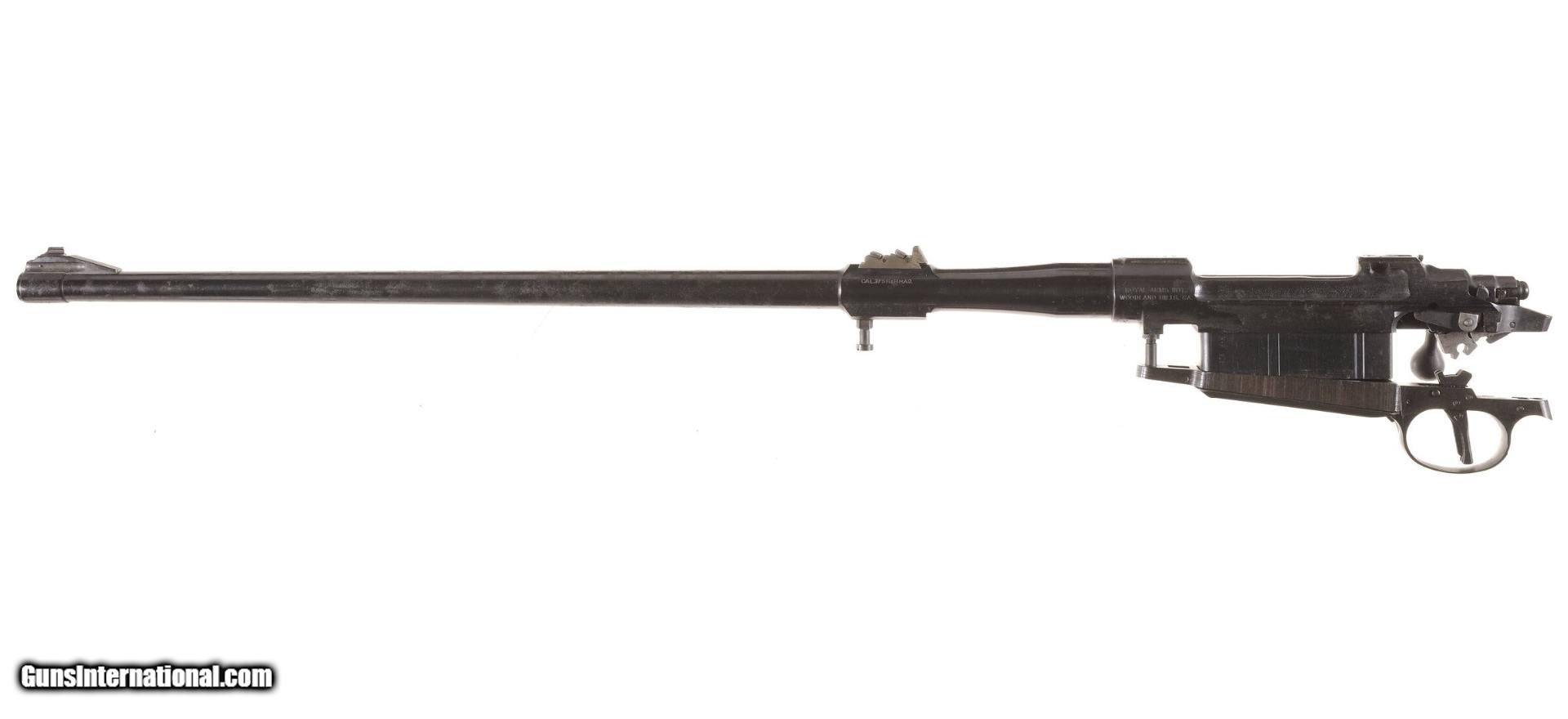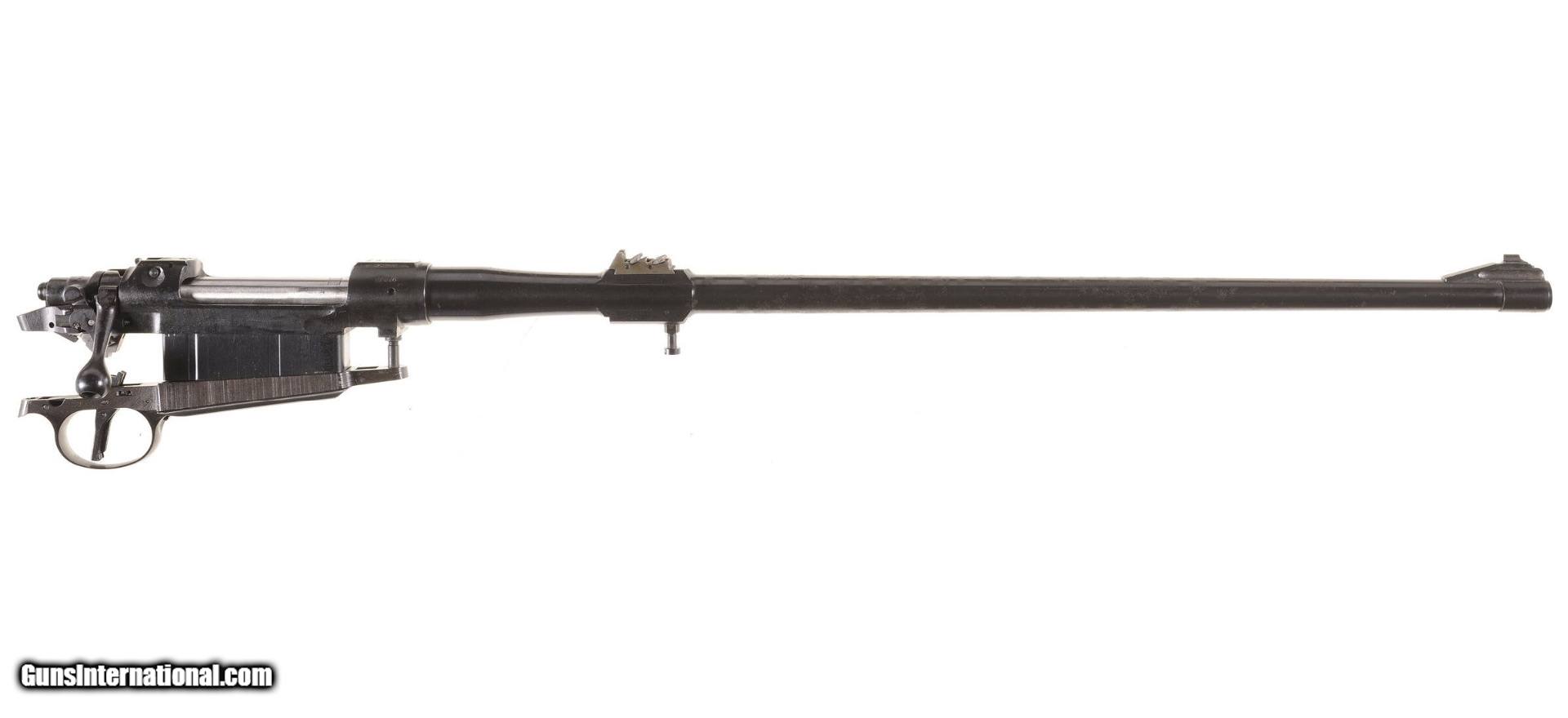 Description: With famous pop up aperture sight and integral dovetails for CZ rings. Only one I have ever seen factory barreled in Belgium, 25" barrel w excellent bore. Marked "Royal Arms". Patchy corrosion on barrel exterior. Missing rear guard screw. SOLD |