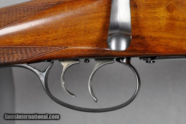 Description: BRNO, CZECHOSLOVAKIA, bolt action carbine, Model 21F, caliber 8X57, s/n 10884, RECEIVER: marked on left side “CESKOSLOVENSKA ZEBROJOVKA, AS, BRNO”, ALSO EXHIBITS PROOF MARK OF CZECH NATIONAL ARMS AND AMMUNITION PROOFING AUTHORITY FOLLOWED BY THE DATE “46” (this proof mark followed by the date firearm was proofed (1946) was the obligatory smokeless powder proof mark for individual rifled arms, top stippled front of receiver marked with circular “CZ” logo, OBVIOUSLY THIS CARBINE WAS A VERY EARLY POST-WAR PRODUCTION SPORTING ARM MANUFACTURED BY CZ IN BRNO, CZECHOSLOVAKIA, Receiver features DOUBLE SET TRIGGERS WITHIN AN OVERSIZED TRIGGER GUARD (FOR WEARING GLOVES WHEN HUNTING), receiver also features a CLASSIC SPOON BOLT, a full length ejector guide , a side safety, and a cutout for a stripper clip, finish on receiver, trigger guard, and floorplate retain their original factory high polished blue in 100% condition, BARREL: 21” in length, SHINY MINT BORE WITH SHARP RIFLING, adjustable open rear sight, blade front sight on ramp, serial number and proof, as mentioned above, are also on barrel as is caliber marking, finish is original high polished blue in 100% condition, STOCK: European Walnut, pistol grip, FULL MANNLICHER STYLE, cheekpiece, steel forearm tip and grip cap, sling swivels, hard buttplate, LOP 14 5/8”, perfectly checkered forearm and pistol grip, stock retains 100% original finish in 99% condition, AN AMAZING SURVIVOR OF AN OVER 70 YEAR OLD RIFLE, GREAT FOR COLLECTING OR A FANTASTIC SHOOTER, Retail value $1750.00, Sale priced at $1495.00 SOLD Curio/Relic: Yes |