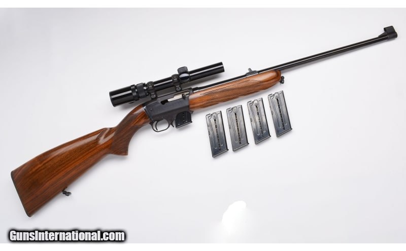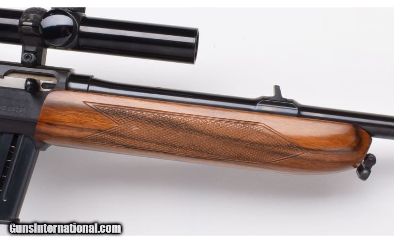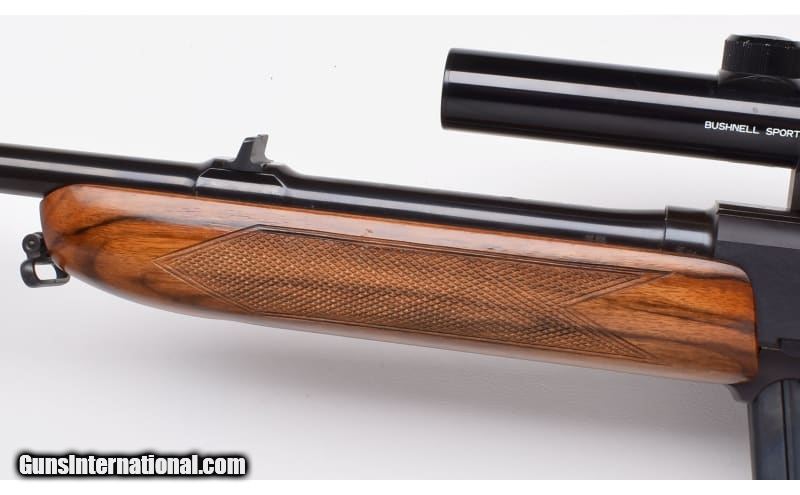 Description: Very Clean, pre-owned 22 magnum take-down rifle shows only a few slight blems. Includes (1) 5-round and (4) 10 round magazines .22 WMR SOLD Metal Condition: Blued Wood Condition: Hogback Style Walnut Stock Bore Condition: Bright / Sharp Barrels: 20 " BBL Triggers: Semi-auto Stock Dimensions: 14 3/8" LOP Fore End: Checkered Butt Pad: Factory Plate Weight: 6 lbs 12 oz Sights: "Dovetailed Rear Sight, Hooded Front, Bushnell 1.5-4.5X Scope Item Location: Buda, TX |
