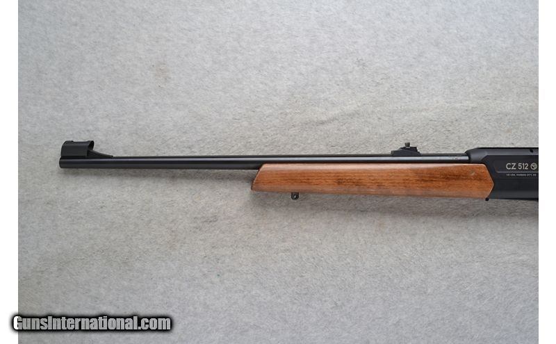 Description: This CZ Model CZ 512 is a right hand semi-auto rifle in .22 Long Rifle Cal. It has a 20.5 inch barrel. A hooded blade front sight, adjustable notch middle sight and is dovetailed. The butt stock is a smooth grip hardwood pistol grip. The forearm is a smooth grip hardwood. .22 Long Rifle SOLD Chambers: Semi-Auto 5 round detachable magazine. Metal Condition: Excellent. Wood Condition: Excellent with a couple of light handling marks. Bore Condition: Excellent. Barrels: 20.5 inch. Stock Dimensions: LOP 13 3/4 inches. Butt Pad: Smooth grip hardwood. Weight: 5 Lb. 8 Oz. Sights: Open top hooded blade front. Adjustable notch on a ramp middle. Dovetailed for a scope mount. Item Location: Richfield, WI |
