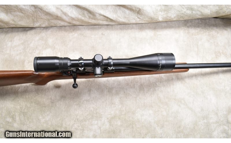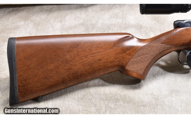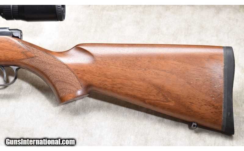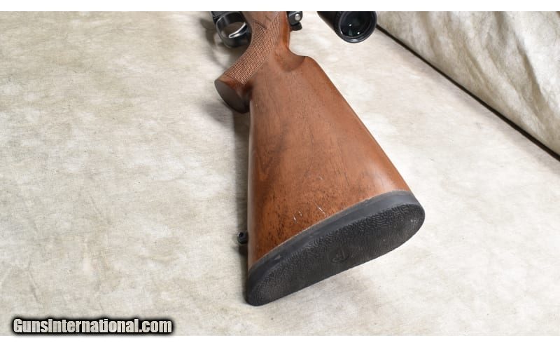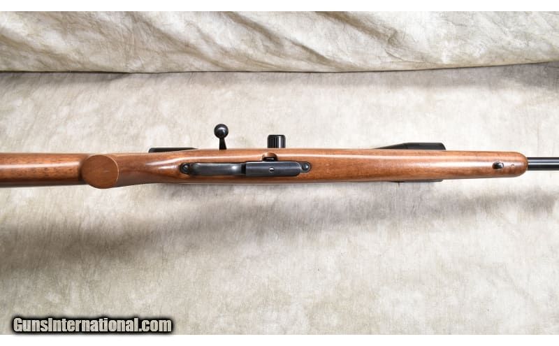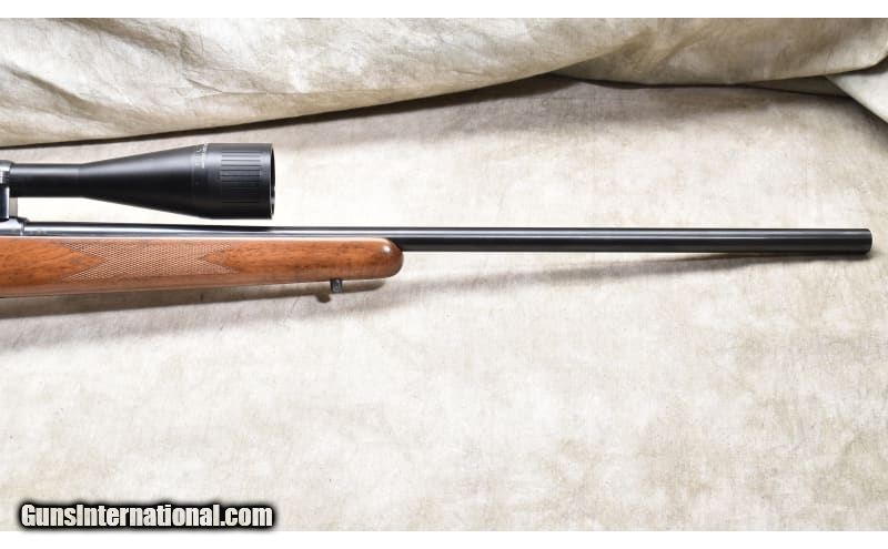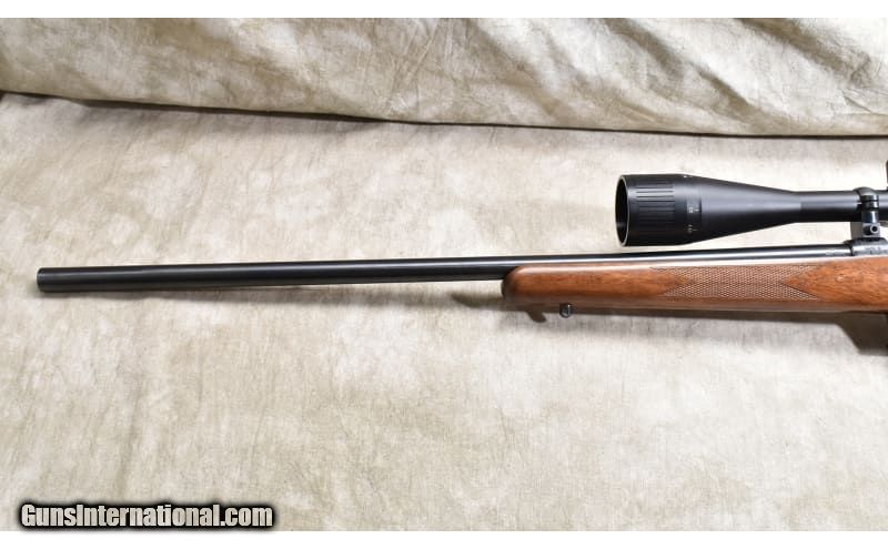 Description: Lovely light varmint rifle chambered in .223 Rem and furnished with a straight taper, .75 inch diameter barrel with a 1 in 9-inch twist. Comes with a high power Barska scope and one magazine. The stock is nice walnut in near excellent condition with just a couple of scratches. It has a single set trigger for ultimate accuracy. .223 Remington SOLD Chambers: 5-round detachable magazine. Metal Condition: Excellent. Wood Condition: Very good to excellent. Bore Condition: Shiny and bright with good rifling. Marked with 1:9" twist. Barrels: "26-inch, 0.75 diameter varmint barrel Triggers: Factory single set trigger.. Stock Dimensions: 13-3/4 inch LOP. Fore End: Checkered. Butt Pad: Soft rubber pad. Weight: 8 lb - 13 oz. with scope Sights: Set up for scope and outfitted with a Barska 6-24x scope. Item Location: Rogers |