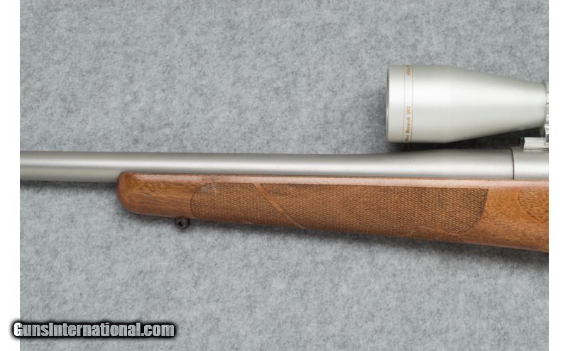 Description: Used. Nice wood! SOLD Caliber Info: .300 WSM Metal Condition: Very good; non-glare stainless Wood Condition: Very good; a few light handling marks Bore Condition: Clean and sharp Barrels: 24 Triggers: Smooth stainless Stock: Classic checkered pistol grip walnut Stock Dimensions: LOP - 13 5/8 Fore End: Checkered walnut Butt Pad: Black rubber pad Weight: 9 lbs. (with scope) Sights: No sights; Nikon scope Extras: Nikon Monarch 3-9 x 40mm scope with mounts. Item Location: Sun Prairie, WI |
