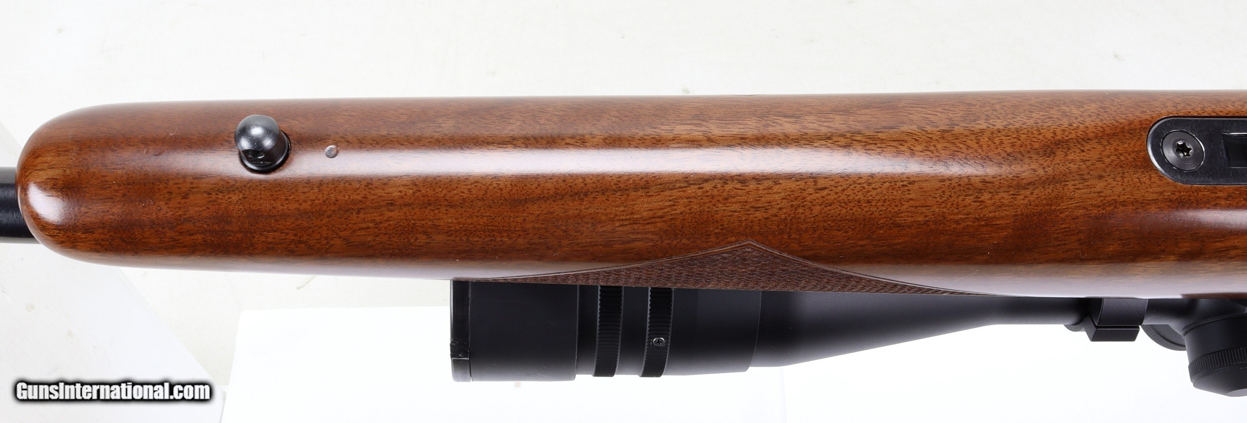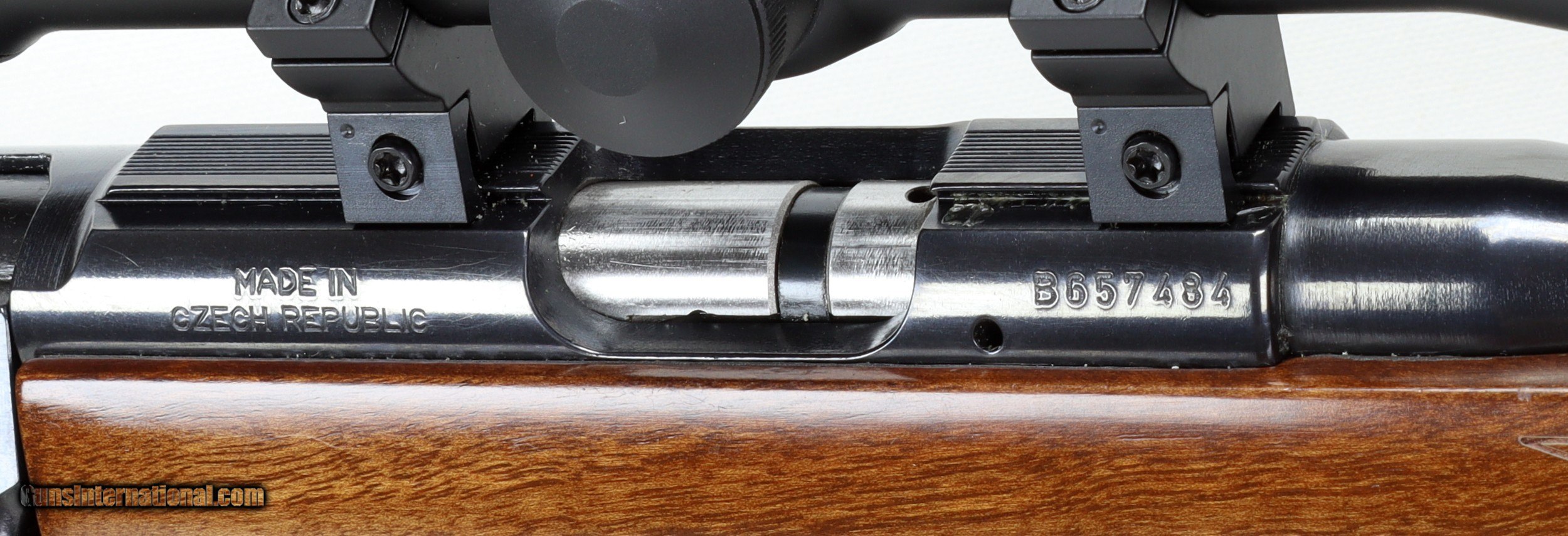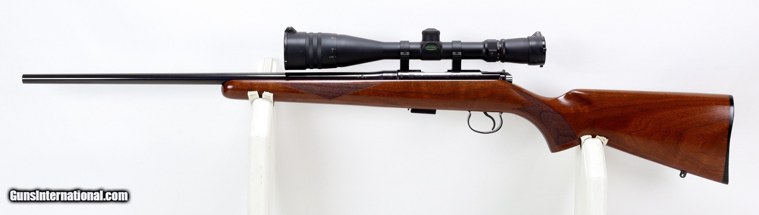 Description: CZ Model 452-2E American Classic Bolt Action Rifle in .22LR. SNN #B657484. Mfg. 1999-2010. LOP 13 3/8". 22 1/2" Barrel with an EXCELLENT Bright Bore with STRONG RIFLING. The Blued Metal and Checkered American Walnut Pistol Grip Stock and Forend are in "LIKE NEW" condition. Action has been bedded in stock. No open sights. Includes a Weaver 6x-24x42 Scope with Scope Caps. 1 - 5 shot magazine. EXCELLENT ALL AROUND CONDITION. Weight: 7.5 lbs. Trigger Pull: 1 5/8 lbs. More photos available upon request. Ships to Lower 48 W/ Insurance $45.00. SOLD Rifle Caliber: .22 Long Rifle Manufacturer: CZ Model: 452-2E American Serial Number: B657484 Barrel Length: 22 1/2 Condition: LIKE NEW Metal Condition: LIKE NEW Wood Condition: LIKE NEW Bore Condition: Excellent Action: Bolt LOP: 13 3/8 Finish: Blue Weight: 7.5 lbs Manufacture Date: 1999-2010 |
