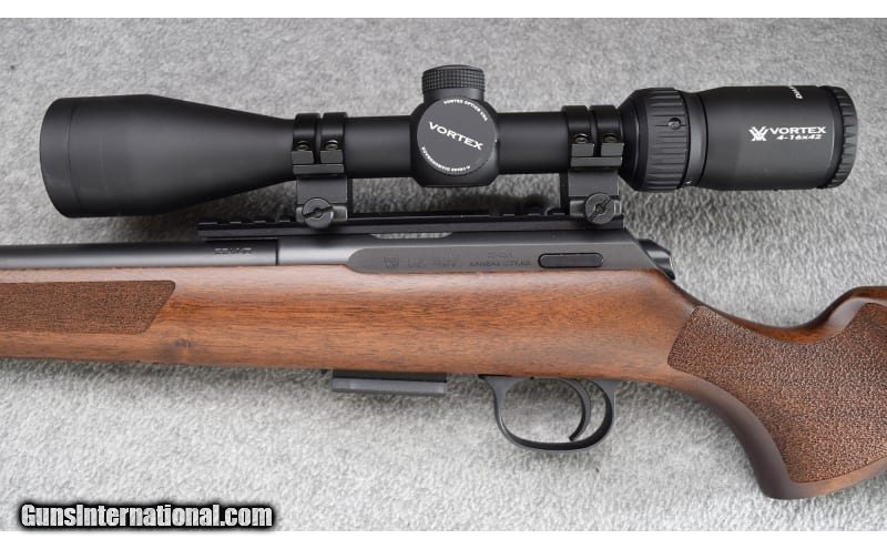 Description: This CZ Model 457 Varmint remains in excellent overall condition showing very little use. Wood, blue and bore are all excellent! Complete with Vortex Diamondback 4-16x42 Scope with BDC Reticle. Gun is complete with owners manual. No box. Very nice little rifle. .22 WMR SOLD Metal Condition: Excellent Wood Condition: Excellent Bore Condition: Excellent Barrels: 20" Heavy Barrel Triggers: Factory Stock Dimensions: 14" LOP Fore End: Turkish Walnut Semi Pistol Grip with Laser Cut Stippling - Turkish Walnut Forend with Laser Cut Stippling Butt Pad: CZ Black Rubber Butt Pad Weight: 8 1/2 lbs Sights: Vortex Diamondback 4-16x42 with BDC Reticle Item Location: Wheeling |