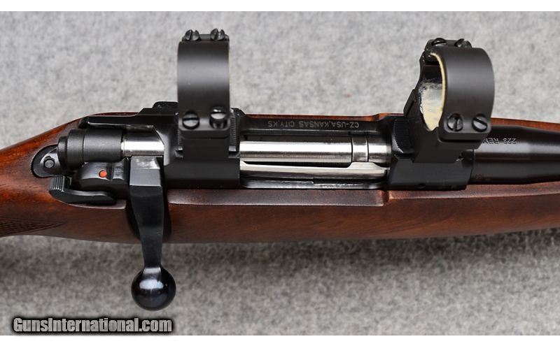 Description: This little CZ was manufactured in the Czech Republic and remains in overall excellent condition. This is a controlled round feed rifle. Wood is solid and shows little use. Blue and bore are also excellent. Complete with CZ rings and sling swivels attached. Nice little gun in a popular caliber. .223 Remington SOLD Metal Condition: Excellent Wood Condition: Excellent Bore Condition: Excellent Barrels: 24 Triggers: 1 1/2 LB Trigger Pull Stock Dimensions: 13 5/8" LOP Fore End: Checkered Walnut Pistol Grip - Checkered Walnut Forend Butt Pad: Checkered Black CZ Buttplate Sights: None - CZ Scope Rings Attached Item Location: Wheeling |