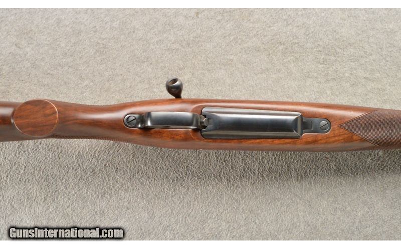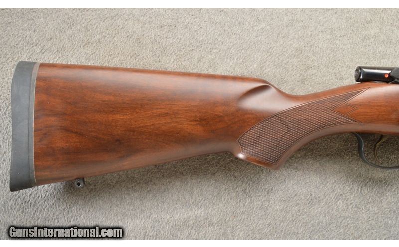 Description: This is an as new CZ-USA Safari Magnum rifle in the powerful .458 Lott round. You can shoot either .458 Win Mag or .458 Lott in this fine rifle. The blue is new looking and the walnut stock is also as new looking. If you are hunting for animals that hunt back this would be a great choice. .458 Lott SOLD Chambers: Bolt action repeater. Metal Condition: Like new. Wood Condition: Like new. Bore Condition: Like new. Barrels: 25" blue with safari sights. Triggers: Single silver color set trigger. Stock Dimensions: 14" LOP. Fore End: Very nice checkered walnut with a sling stud. Butt Pad: "Matching walnut with a checkered pistol grip, raised cheek, sling stud and a black rubber butt pad. Weight: 9 lbs 3 oz Sights: 1 Standing and 2 folding rear safari sights and a hooded blade front. Item Location: Owatonna, MN |
