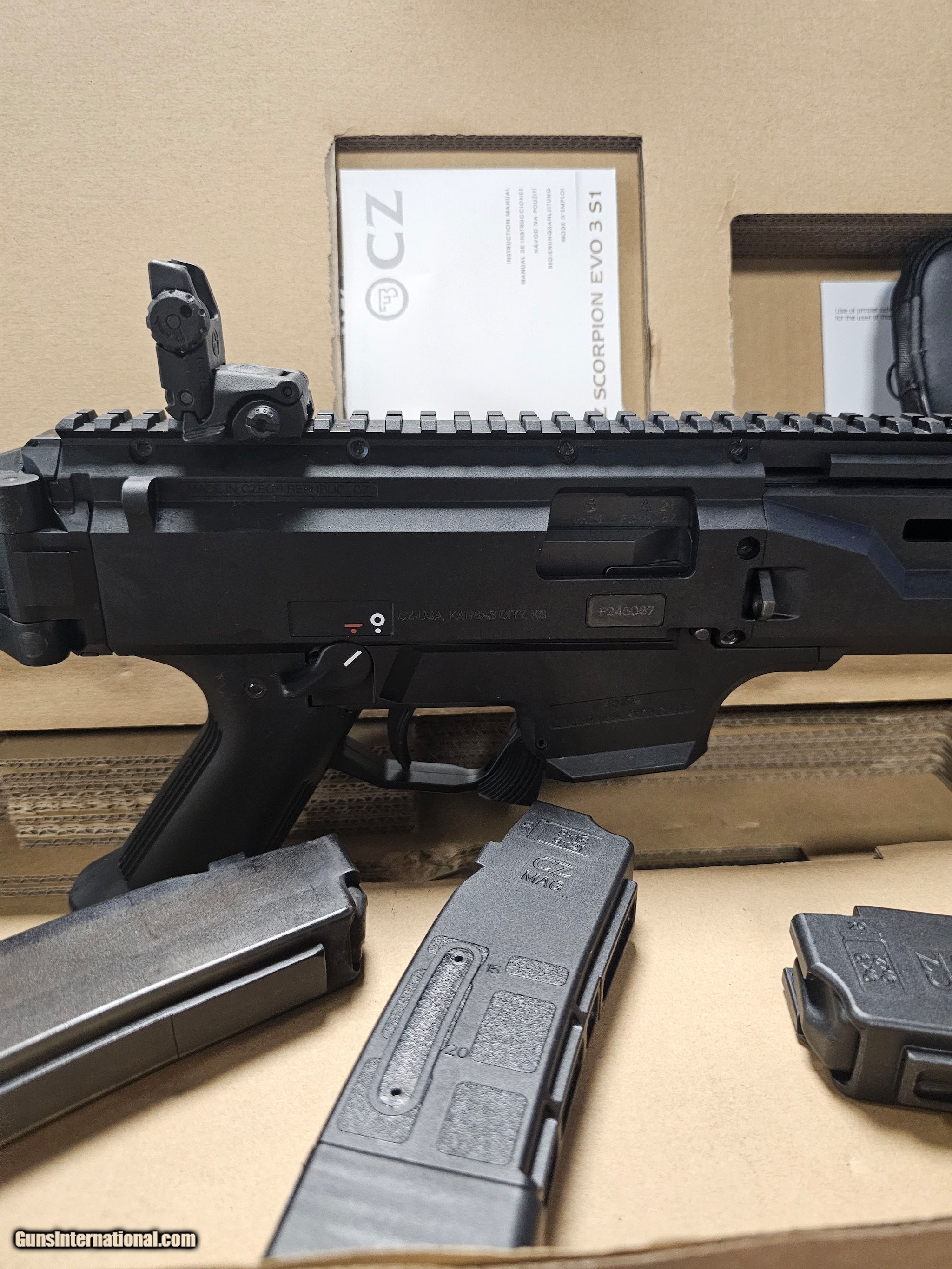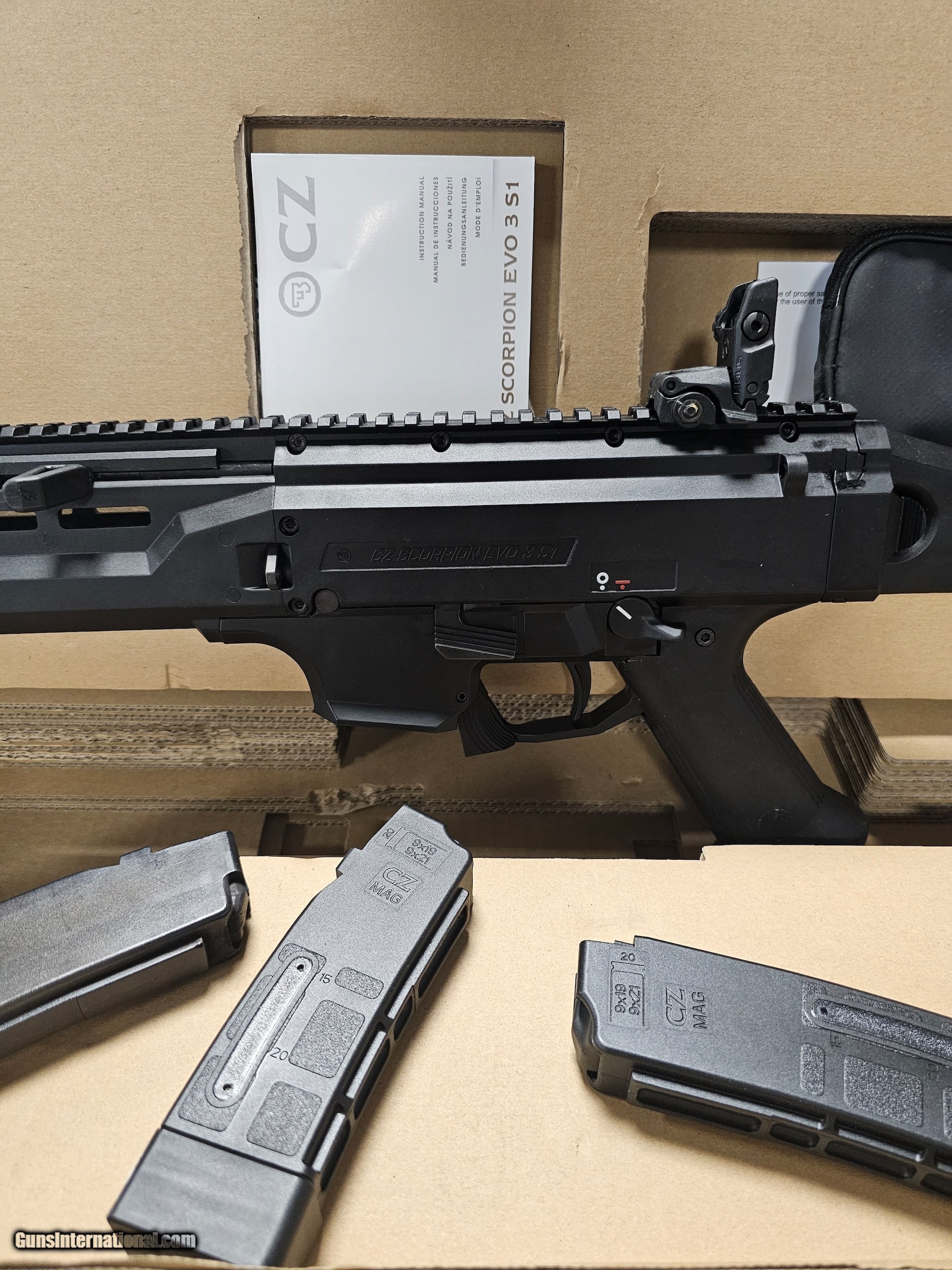 Description: Guns Listing ID: 859580 Up for sale is a slightly used CZ Scorpion EVO 3 S1. It comes with the original box, manuals, and 2x20rd mags and 1x30rd mag. SOLD Manufacturer: CZ Model: SCORPION EVO 3 S1 Caliber Info: 9MM LUGER (9X19 PARA) Condition: Used - Non-Certified Barrels: 16.2 BARREL |