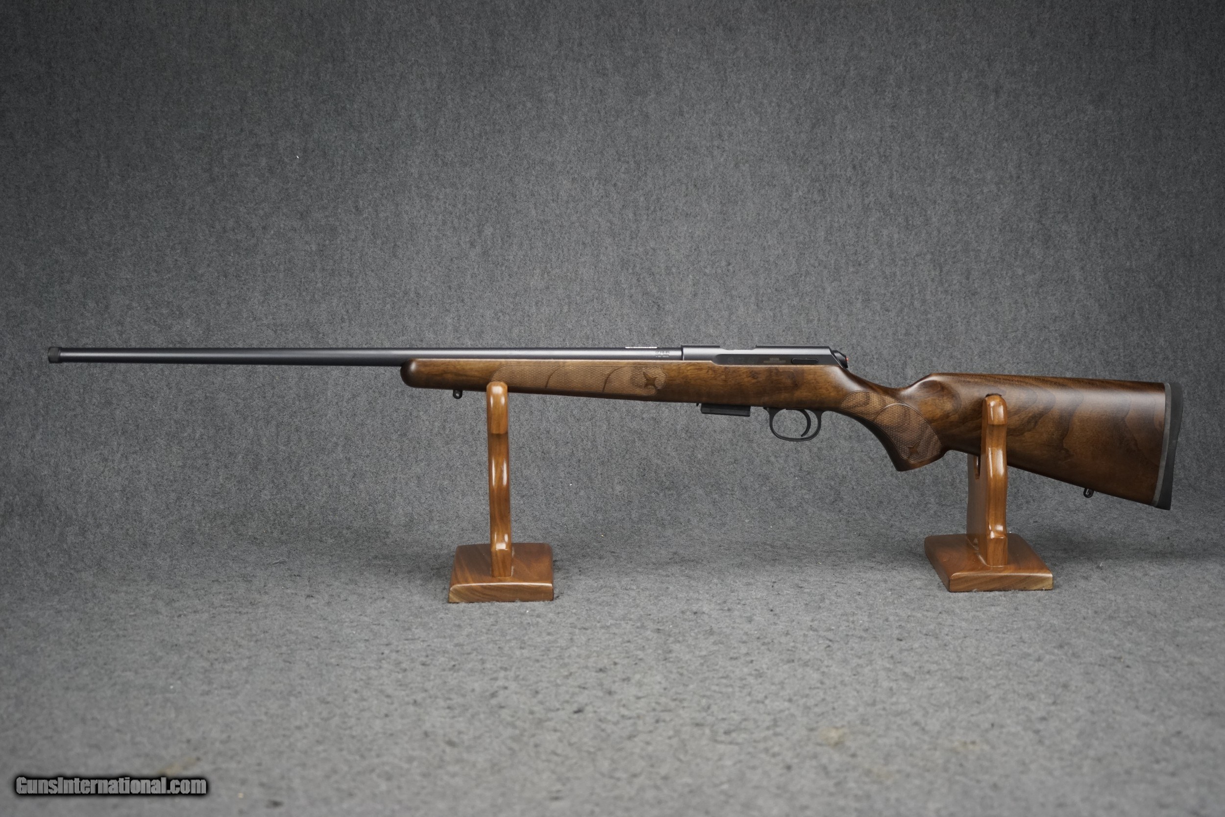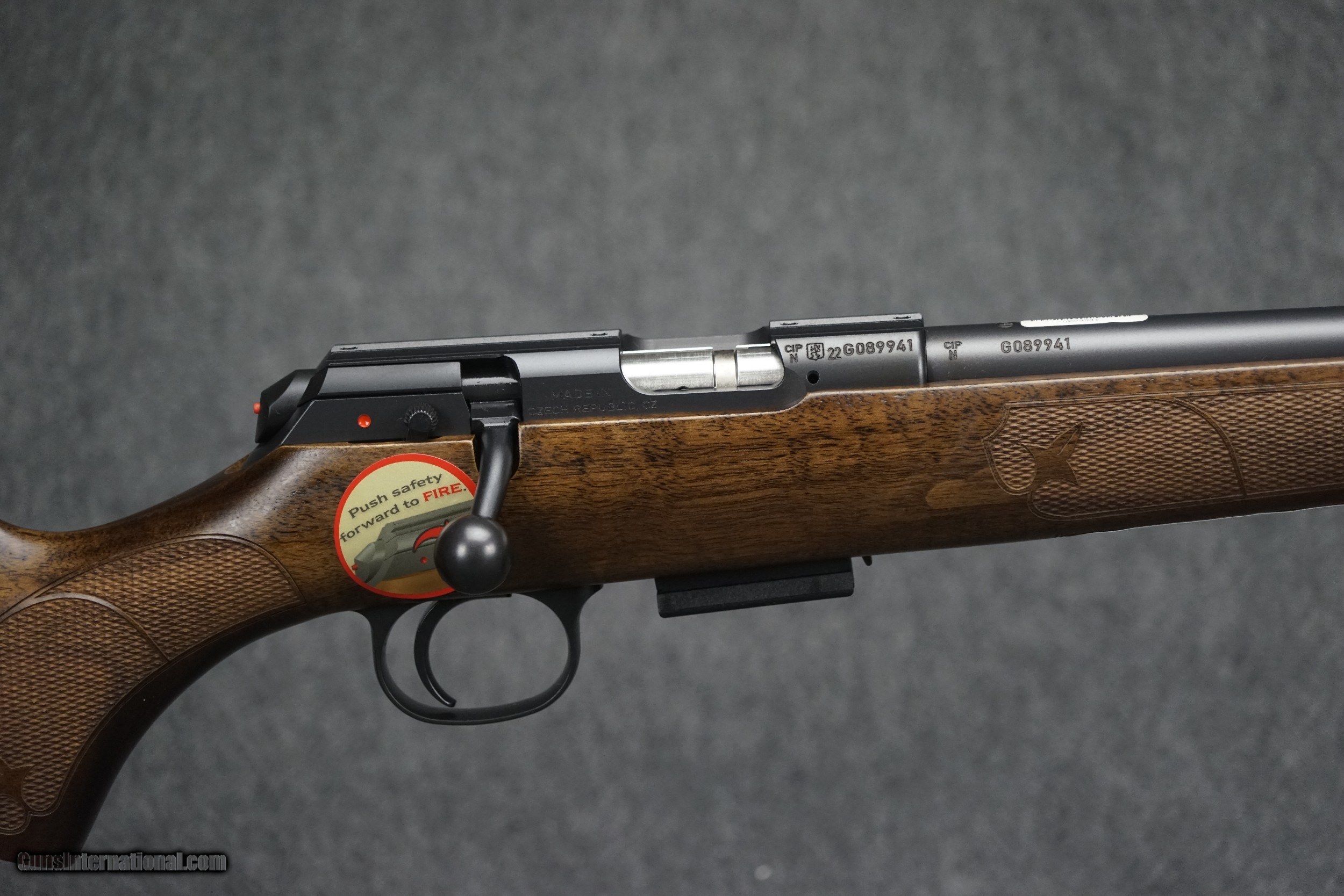 Description: Chambering: .17 HMR Rate Of Twist: 1:9 in Magazine Capacity: 5 Magazine Type: Detachable Stock: Turkish Walnut, American-Style Sights: No Sights, Integrated 11mm Dovetail Barrel: Cold Hammer Forged, 1/2x20 Threaded Barrel Barrel Length: 20 in Trigger Mech: Adjustable Safety: Two-Position, Push-To-Fire CZ USA 457 American SOLD Rifle Caliber: .17 HMR Manufacturer: CZ USA Model: 457 American Barrel Length: 20" Barrel Condition: BRAND NEW |