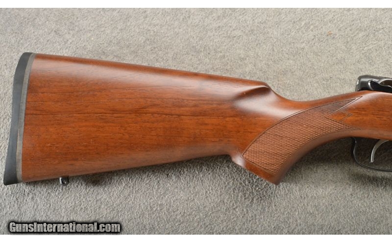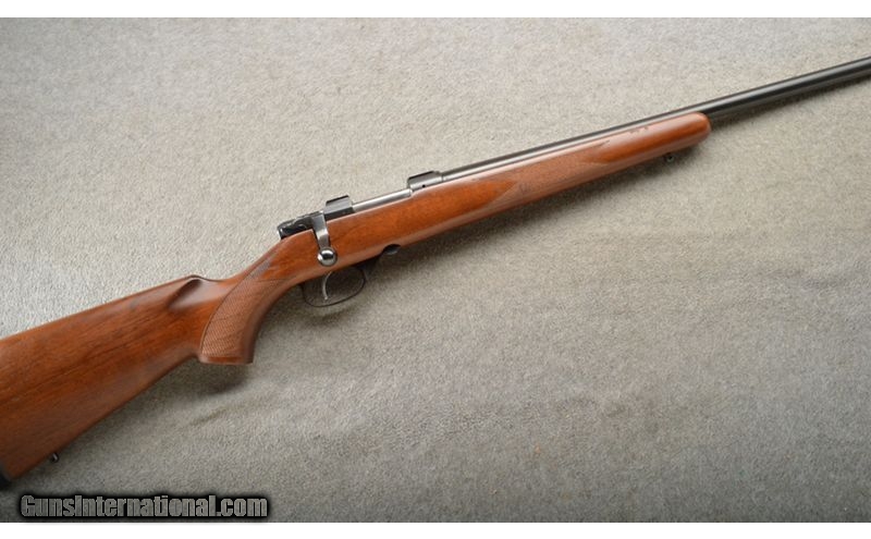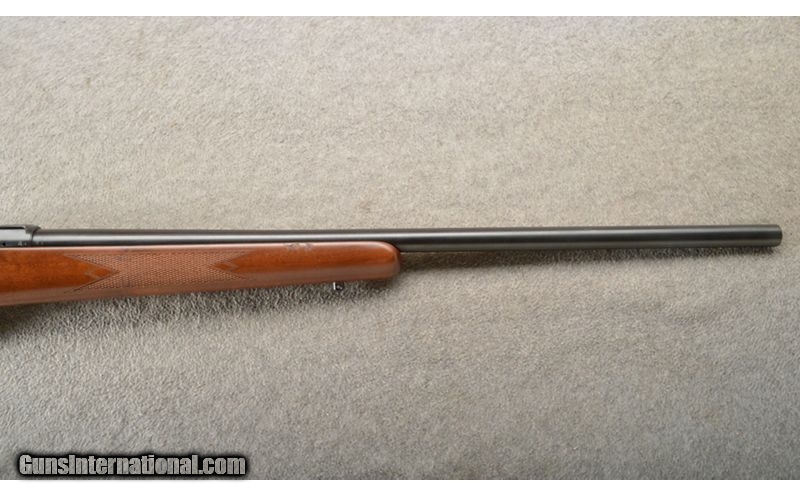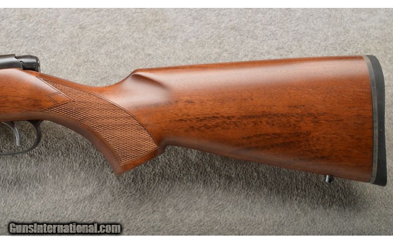 Description: This is a factory blemished rifle that only has a tiny bit of blue wear on the trigger guard. The Varmint retains all of the features that made the 527 famous, from its controlled round feed and claw extractor to its single set trigger and hammer forged barrel. Scope mounts are integrated into a forged, square bridge receiver (rings not included), and the rifle comes with a 5-round detachable box magazine. .17 Hornet SOLD Chambers: Bolt action repeater 5+1. Metal Condition: Very good plus with a few scuffs on the trigger guard. Wood Condition: Excellent. Bore Condition: Bright and shiny. Barrels: 24" heavy cold hammer forged blue barrel. Triggers: Single silver color set trigger. Stock Dimensions: 13 3/4" LOP. Fore End: Sporting style with checkering and a sling stud. Butt Pad: "Turkish walnut with a checkered pistol grip, sling stud and black rubber butt pad. Weight: 6 Lbs. 14 Oz. Sights: 16MM Scope bases. Item Location: Owatonna, MN |