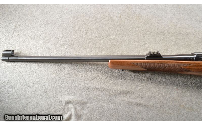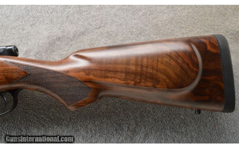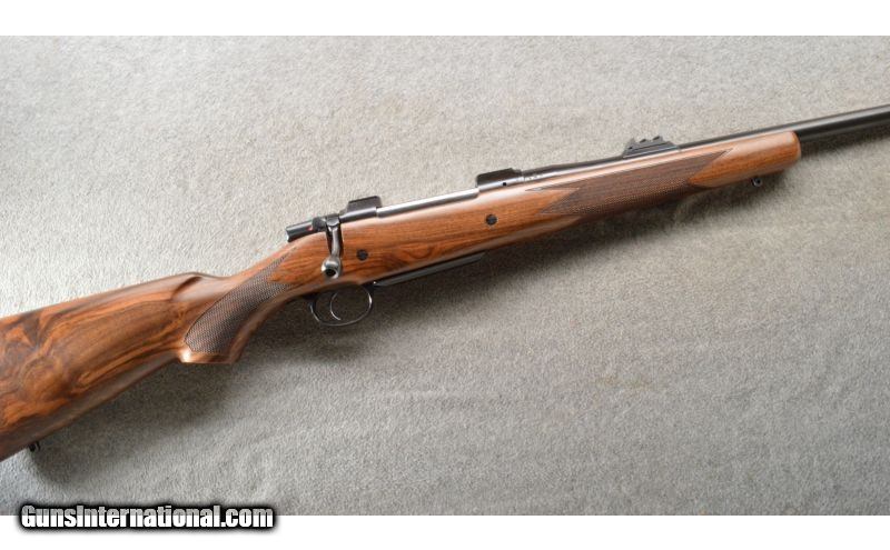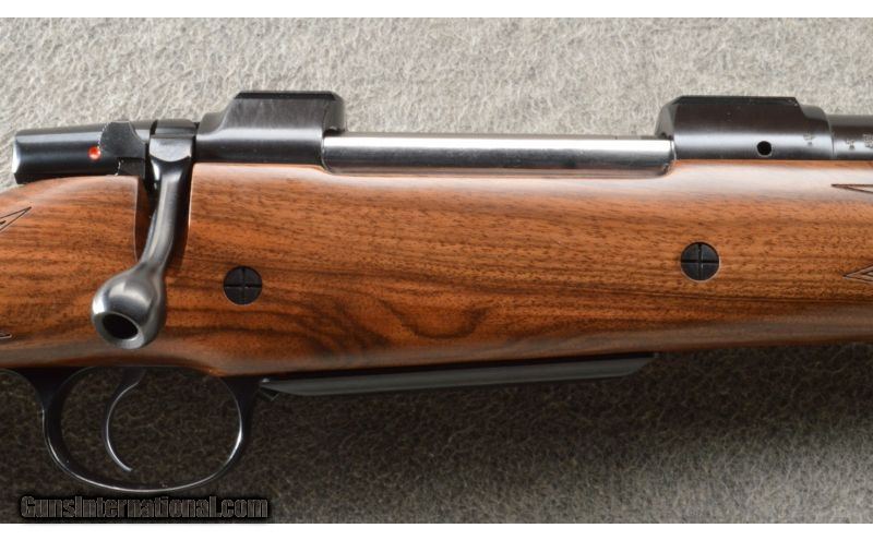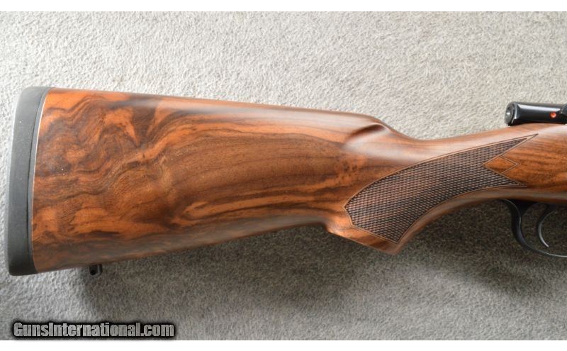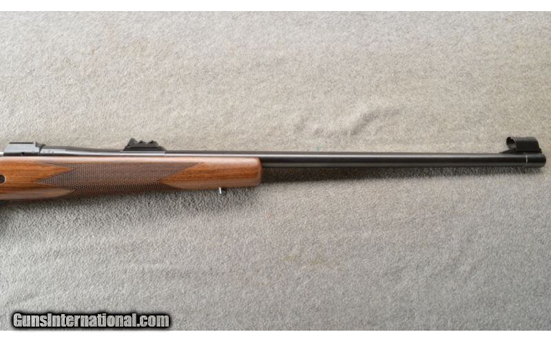 Description: Built on a CZ USA 550 Magnum action, the American Safari Magnum is intended for use with magnified optics, but with backup irons in place were that optic to be removed. Its American-styled stock has a high, flat comb for this purpose, while its round forend won’t snag on brush and limbs. QD sling studs are mounted into the stock, and a thick rubber butt pad helps tame recoil. Features include 3-leaf express sights (1 standing, 2 folding), hammer forged barrel and single set trigger. Mauser-style controlled round feed and fixed ejector make this rifle reliable for high-stress situations with heavy and dangerous game. SOLD Manufacturer: 2018 Caliber Info: .375 H&H. Chambers: Bolt action repeater 4+1. Metal Condition: ANIB. Wood Condition: ANIB. Bore Condition: ANIB. Barrels: 25 inch blue with sights and a 1 in 12 trist rate. Triggers: Single set trigger. Stock: Fancy grade Turkish walnut, American-style. Stock Dimensions: 14 inch LOP. Fore End: Matching checkered walnut with a sling stud. Butt Pad: Black rubber butt pad. Weight: 9 Lbs 10 Oz. Sights: 3-leaf express sights (1 standing, 2 folding) and a hooded front. Extras: Comes in the factory box with the manual. Item Location: Owatonna, MN |