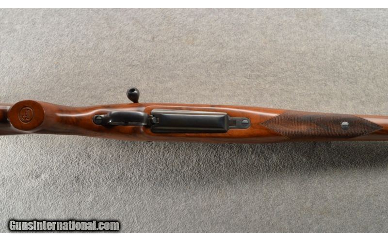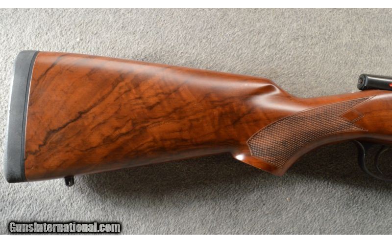 Description: Built on a CZ USA 550 Magnum action, the American Safari Magnum is intended for use with magnified optics, but with backup irons in place were that optic to be removed. Its American-styled stock has a high, flat comb for this purpose, while its round forend won’t snag on brush and limbs. QD sling studs are mounted into the stock, and a thick rubber butt pad helps tame recoil. Features include 3-leaf express sights (1 standing, 2 folding), hammer forged barrel and single set trigger. Mauser-style controlled round feed and fixed ejector make this rifle reliable for high-stress situations with heavy and dangerous game. SOLD Manufacturer: 2018-2019 Caliber Info: .375 H&H. Chambers: Bolt action repeater 4+1. Metal Condition: ANIB. Wood Condition: ANIB. Bore Condition: ANIB. Barrels: 25 inch blue with sights and a 1 in 12 twist rate. Triggers: Single set trigger. Stock: Fancy grade Turkish walnut, American-style. Stock Dimensions: 14 inch LOP. Fore End: Matching checkered walnut. Butt Pad: Black rubber butt pad. Weight: 10 Lbs . 4 Oz. Sights: 3-leaf express sights (1 standing, 2 folding) and a hooded front. Also has a pop up rear peep sight. Extras: Comes in the factory box with the paperwork. Item Location: Wichita, KS |