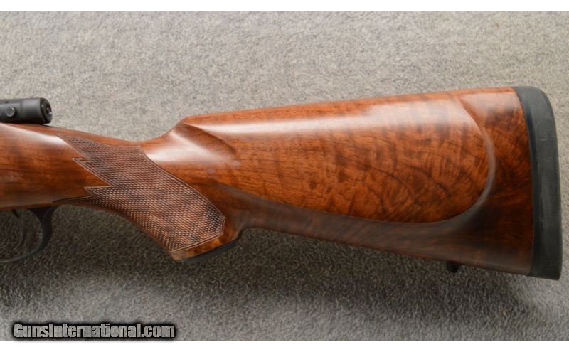 Description: Built on the CZ USA 550 Magnum action, the American Safari Magnum is intended for use with magnified optics, but with backup irons in place were that optic to be removed. Its American-styled stock has a high, flat comb for this purpose, while its round forend won’t snag on brush and limbs. QD sling studs are mounted into the stock, and a thick rubber butt pad helps tame recoil. Features include 3-leaf express sights (1 standing, 2 folding), hammer forged barrel and single set trigger. Mauser-style controlled round feed and fixed ejector make this rifle reliable for high-stress situations with heavy and dangerous game. SOLD Manufacturer: Newer production. Caliber Info: .485 Lott. Chambers: Bolt action repeater 4+1. Metal Condition: ANIB. Wood Condition: ANIB. Bore Condition: ANIB. Barrels: 25 inch blue with sights and a 1 in 14 twist rate. Triggers: Single set trigger. Stock: Fancy grade Turkish walnut, American-style with a checkered pistol grip and steel grip cap. Stock Dimensions: 13 3/4 inch LOP. Fore End: Matching checkered walnut with a black tip. Butt Pad: Black rubber butt pad. Weight: 9 Lbs. 13 Oz. Sights: 3-leaf express sights (1 standing, 2 folding) and a hooded front. Extras: Comes in the box with the manual. Item Location: Owatonna, MN |