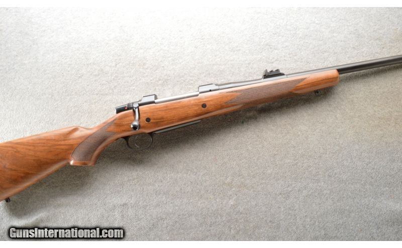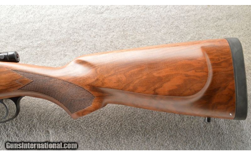 Description: Built on a CZ-USA 550 Magnum action, the American Safari Magnum is intended for use with magnified optics, but with backup irons in place were that optic to be removed. Its American-styled stock has a high, flat comb for this purpose, while its round forend won’t snag on brush and limbs. QD sling studs are mounted into the stock, and a thick rubber butt pad helps tame recoil. Features include 3-leaf express sights (1 standing, 2 folding), hammer forged barrel and single set trigger. Mauser-style controlled round feed and fixed ejector make this rifle reliable for high-stress situations with heavy and dangerous game. SOLD Manufacturer: 2018 Caliber Info: .458 Lott. Chambers: Bolt action repeater 4+1. Metal Condition: ANIB. Wood Condition: ANIB. Bore Condition: ANIB. Barrels: 25 inch blue with sights and a 1 in 14 twist rate. Triggers: Single set trigger. Stock: Fancy grade Turkish walnut, American-style. Stock Dimensions: 14 inch LOP. Fore End: Matching checkered walnut with a sling stud. Butt Pad: Black rubber butt pad. Weight: 9 Lbs 8 Oz. Sights: 3-leaf express sights (1 standing, 2 folding) and a hooded front. Extras: Comes in the factory box. Item Location: Woodbury, MN |