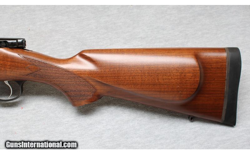 Description: Excellent, light wear and handling marks. Bolt action magnum rifle chambered for the powerful .375 H&H magnum cartridge. Heavy barrel with express sights and 1" rings installed. Smooth action, crisp trigger, very nice wood. A great choice for hunting most any type of large and dangerous game animals .375 H&H Magnum SOLD Chambers: Bolt actin Metal Condition: Excellent Wood Condition: Excellent Bore Condition: Bright Barrels: 25 Triggers: Factory Stock Dimensions: 14 1/2" LOP Fore End: Checkered Butt Pad: Factory pad Sights: "3 Leaf express sights, 1"" scope rings installed Item Location: La Vista, NE |