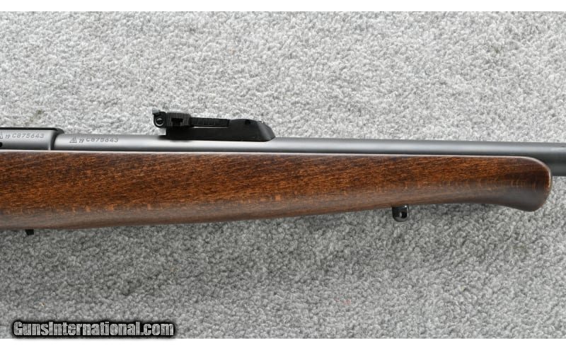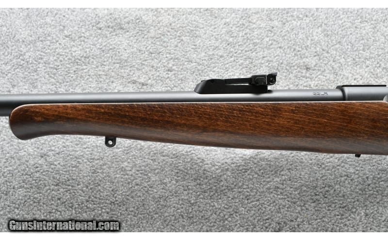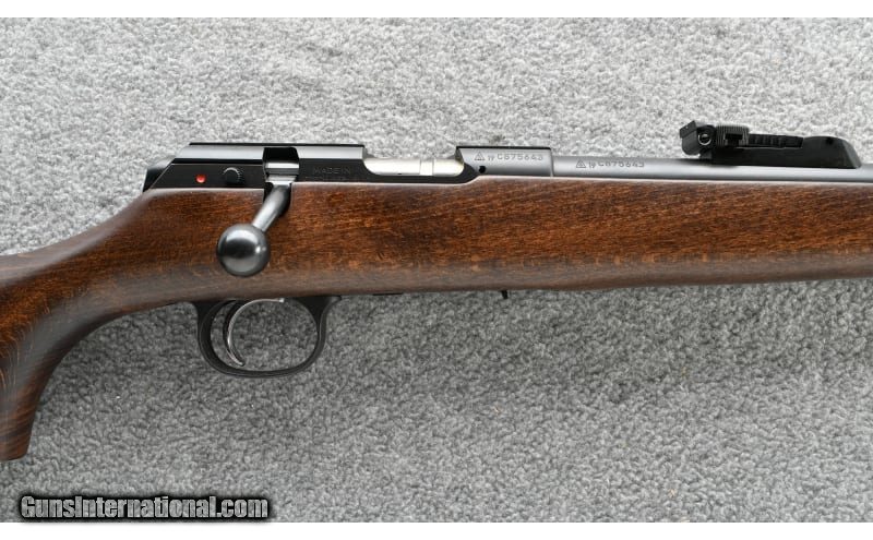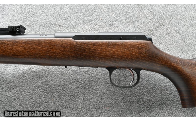 Description: The CZ 457 features a Turkish Walnut stock in the Bavarian style. The push-to-fire safety is new as well as the 60 degree bolt rotation. This is one classy rimfire rifle. .22 Long Rifle SOLD Chambers: .22 Long Rifle in a five round detachable box magazine bolt action rifle Metal Condition: Appears near new Wood Condition: Appears near new Bore Condition: Bright and Sharp Barrels: 24.8 Triggers: Factory adjustable Stock Dimensions: 13 7/8" LOP Fore End: Turkish walnut with Schnabel tip and sling stud Butt Pad: CZ solid rubber Weight: 6 Lbs. 8 Oz. Sights: "Hooded front blade, Tangent leaf rear, receiver grooved 11mm for tip-off scope mounts Item Location: Grand Junction, CO |