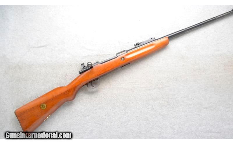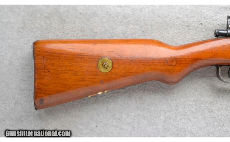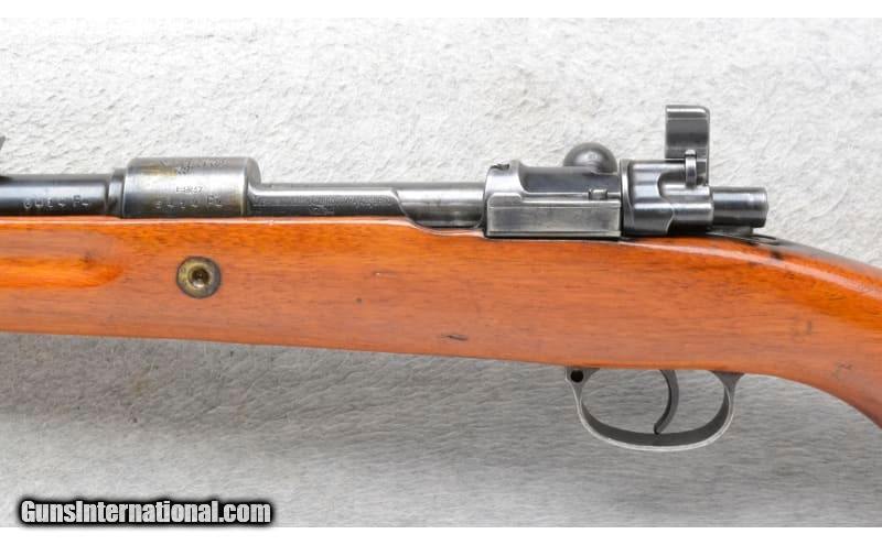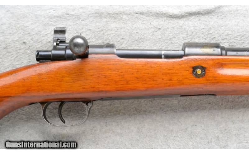 Description: This CZ Model VZ.24 Sporterized is a right hand bolt action rifle in 7.92x57mm Cal. It has a 24 inch barrel. A raised blade front sight and a numbered sliding adjustable notch middle sight. The butt stock is a smooth grip hardwood pistol grip. The forearm is a smooth grip hardwood with finger grooves. There is a crest stamped on top of the receiver. 7.92x57mm SOLD Chambers: Internal magazine. Metal Condition: Good. Light blue wear/use. Wood Condition: Good. Some light handling marks. Appears refinished. Bore Condition: Excellent. Barrels: 24 inch barrel. Stock Dimensions: LOP 13 inches. Fore End: Smooth grip hardwood with finger grooves. Butt Pad: Smooth steel plate. Weight: 7 Lb. 14 Oz. Sights: Raised blade front. Numbered sliding adjustable notch middle. Item Location: Richfield, WI |